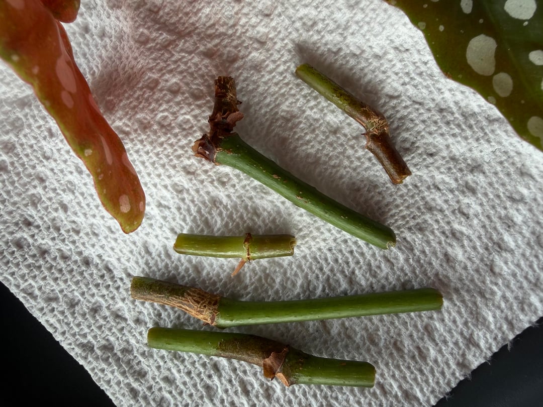 私のベゴニア・マキュラータに何が起こっているのか推測できますか?成長するかどうかを確認するためにこれらの挿し木をしましたが、虫や病気の被害が多すぎるのではないかと心配しています。アザミウマの侵入を大喜びしましたが、現在は有益なバグの第 2 ラウンド中です。何かアイデアはありますか? 🤔