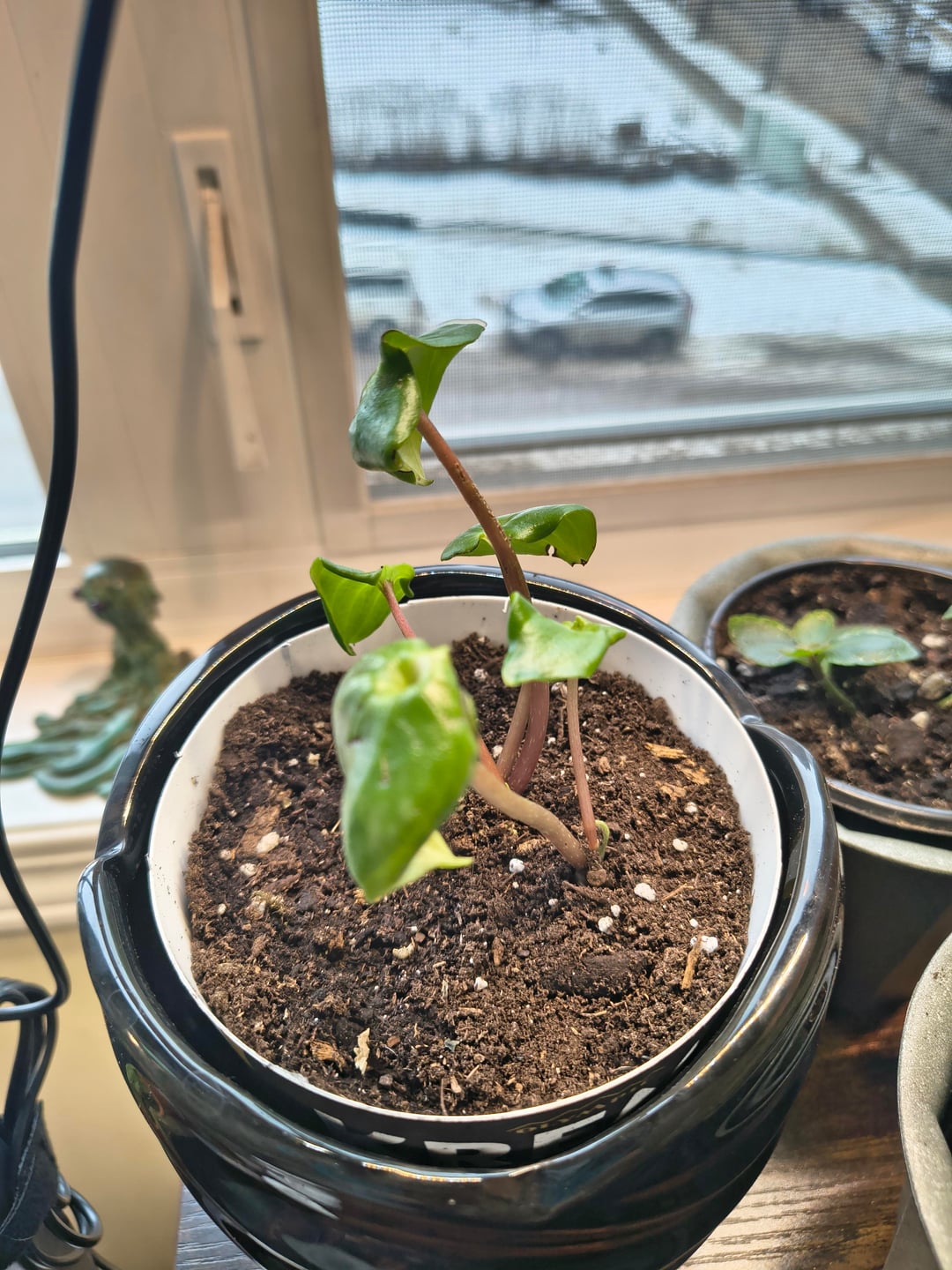そして2つ目は、ホームセンターの在庫処分品で手に入れた、悲しい小さなスイカのペペルモニアです。受け取ってから小さな葉が2枚出てきましたが、なぜまだこのままなのでしょうか?