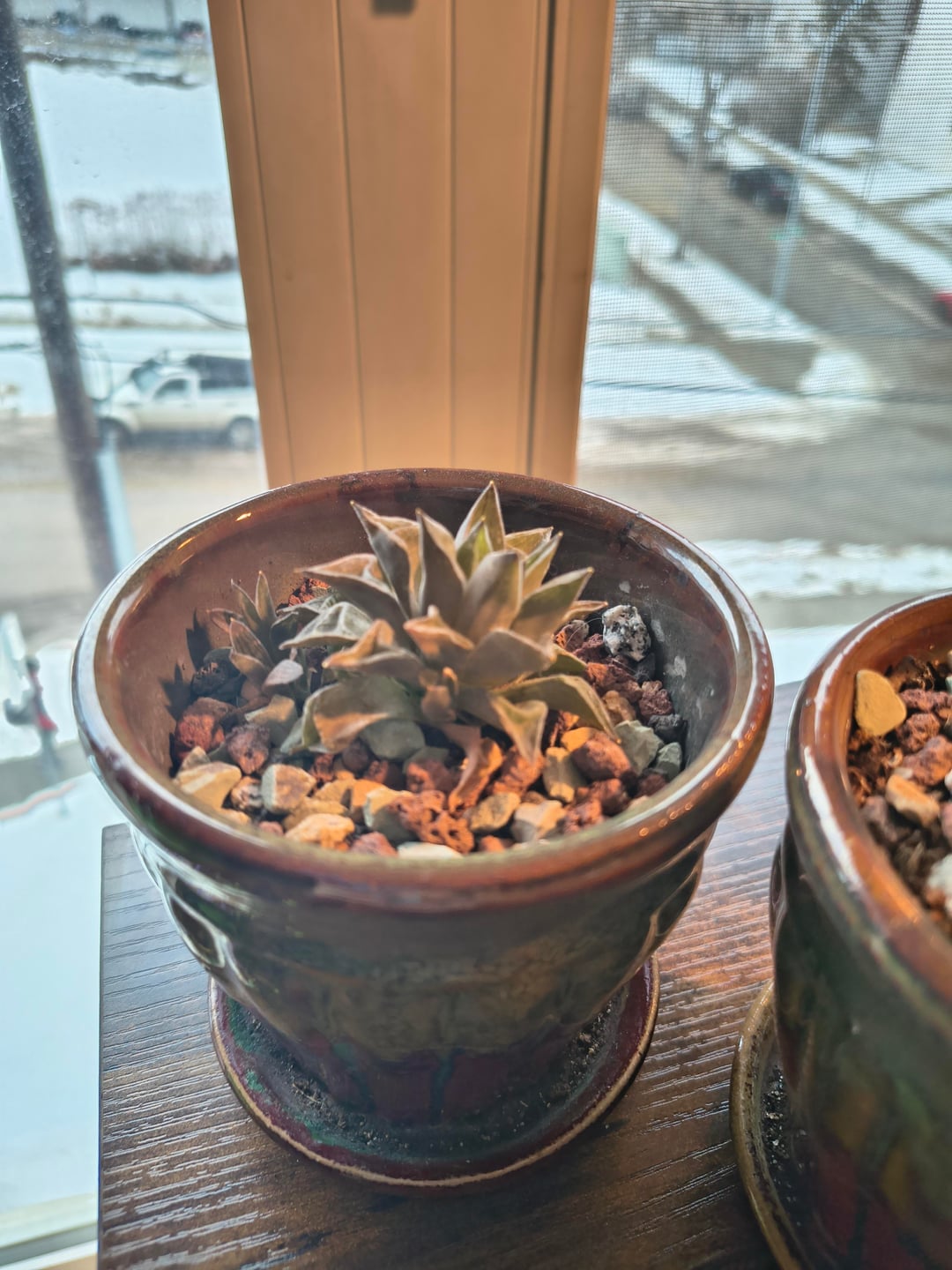 残念ながら、私は北向きの窓しかないアパートの下層階に住んでいます。アルバータ州は本当に乾燥しているので、ちょっとした加湿器を買って夕方にしばらく使っています。補助的にグローライトを 2 つ用意します (3 つ目を入手する予定です)。このホーソーンの多肉植物は、しばらくトランチュラの囲いの中にあったのですが、ピンク色になり始めたので(Googleは日焼けしていると言っています)、取り出してここに出しました。今では見た目はほとんど悪くなりました。いつも沈んでいるのですが、何が問題なのでしょうか? :c