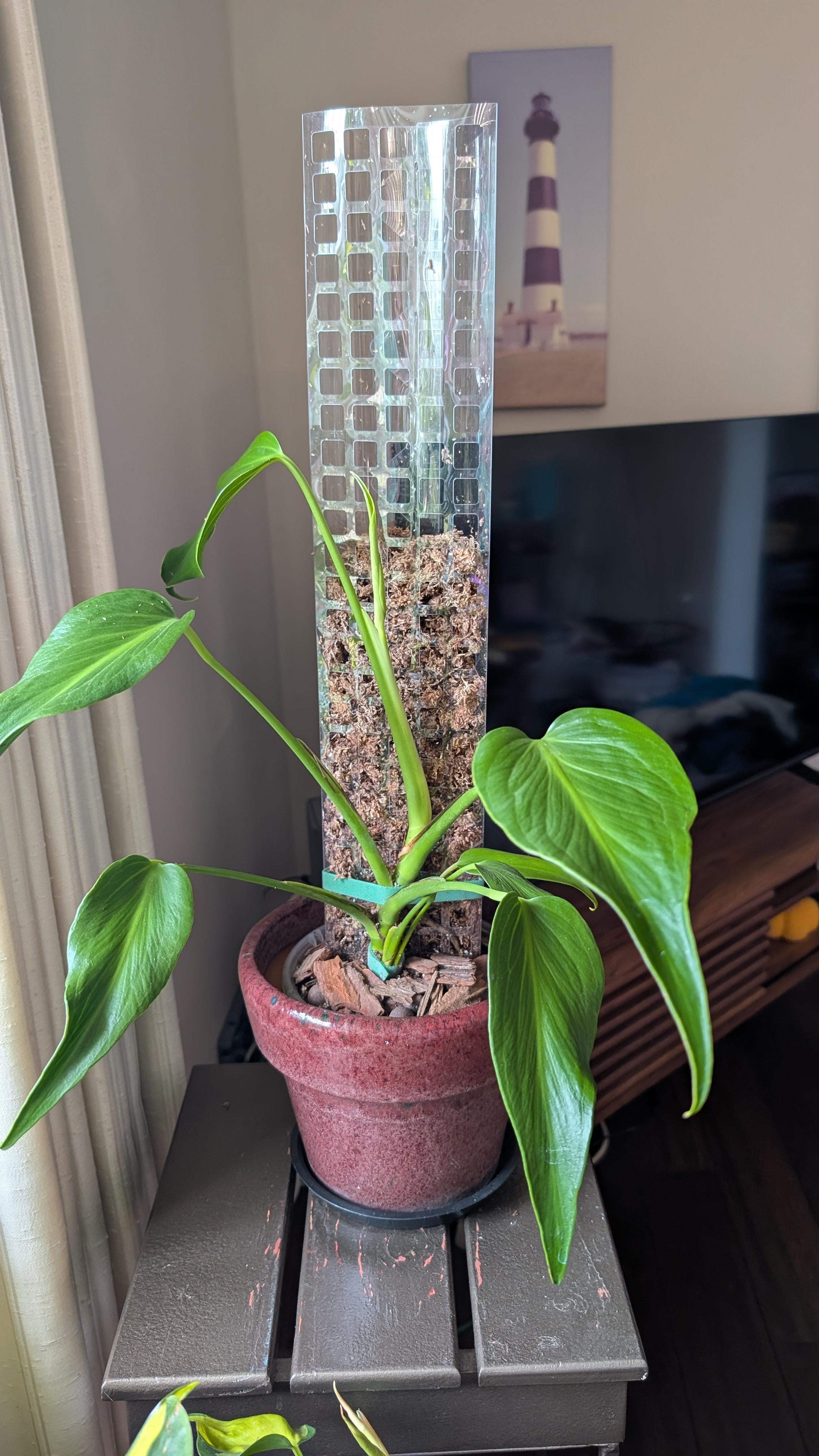 私のコレクションは、玄関先に行きたくなるポトス、フィロデンドロン、ピースユリで構成されています。私の愛らしいクワズイモと、苔の支柱に植えられた私のよりファンシーなモンステラとフィロデンドロンは、家の中に残ります。
