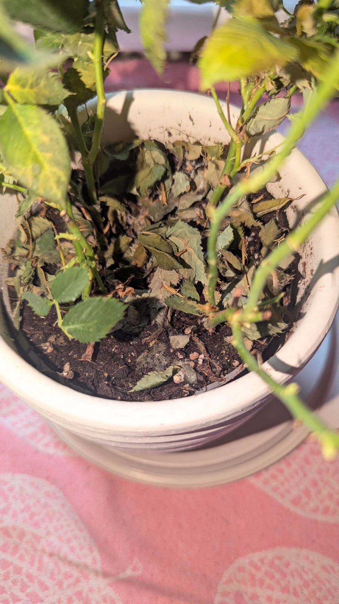 鉢の中の落ち葉に、うっすらとした灰色のカビが見られます。これを保存することは可能でしょうか?剪定し直すか、水やりの方法を変えるか、枯れたバラを切り取るか。