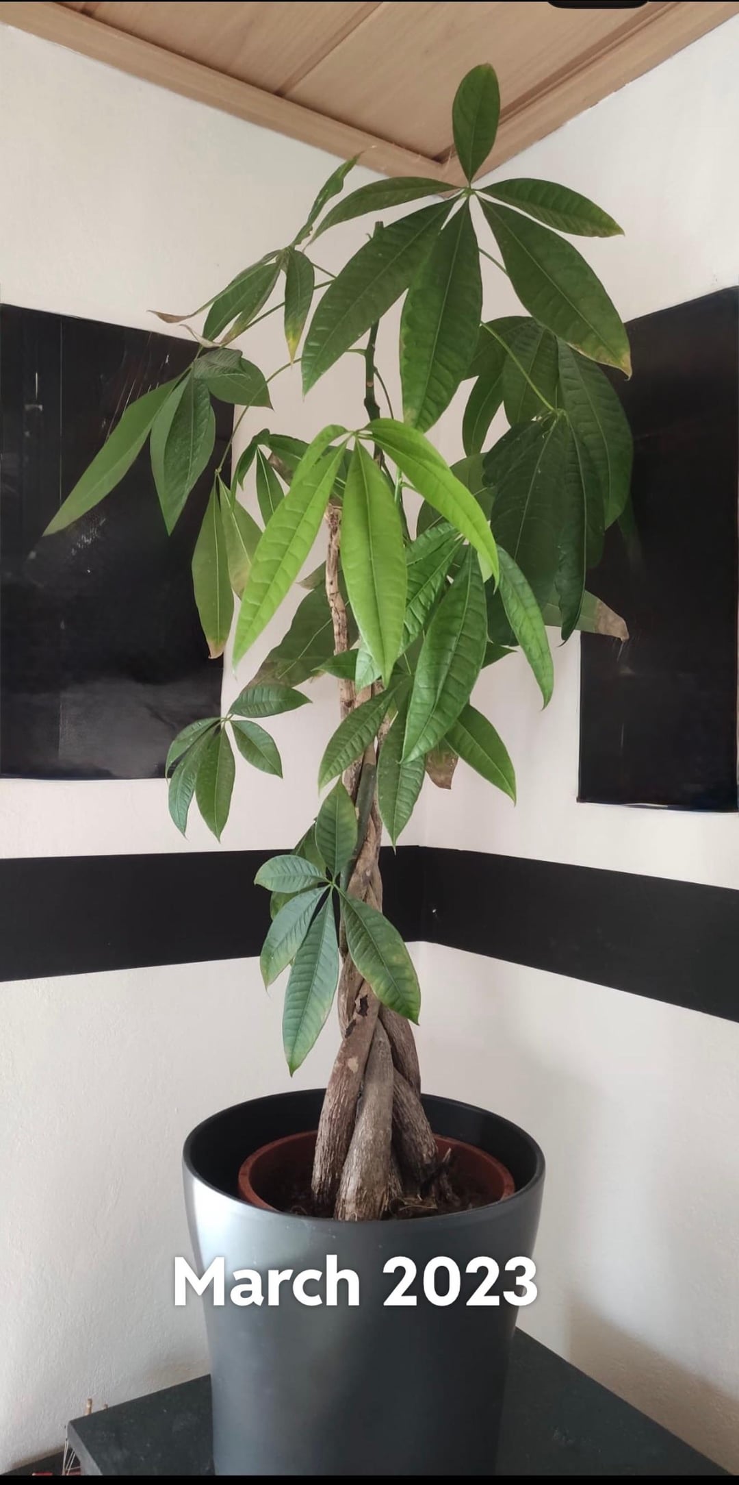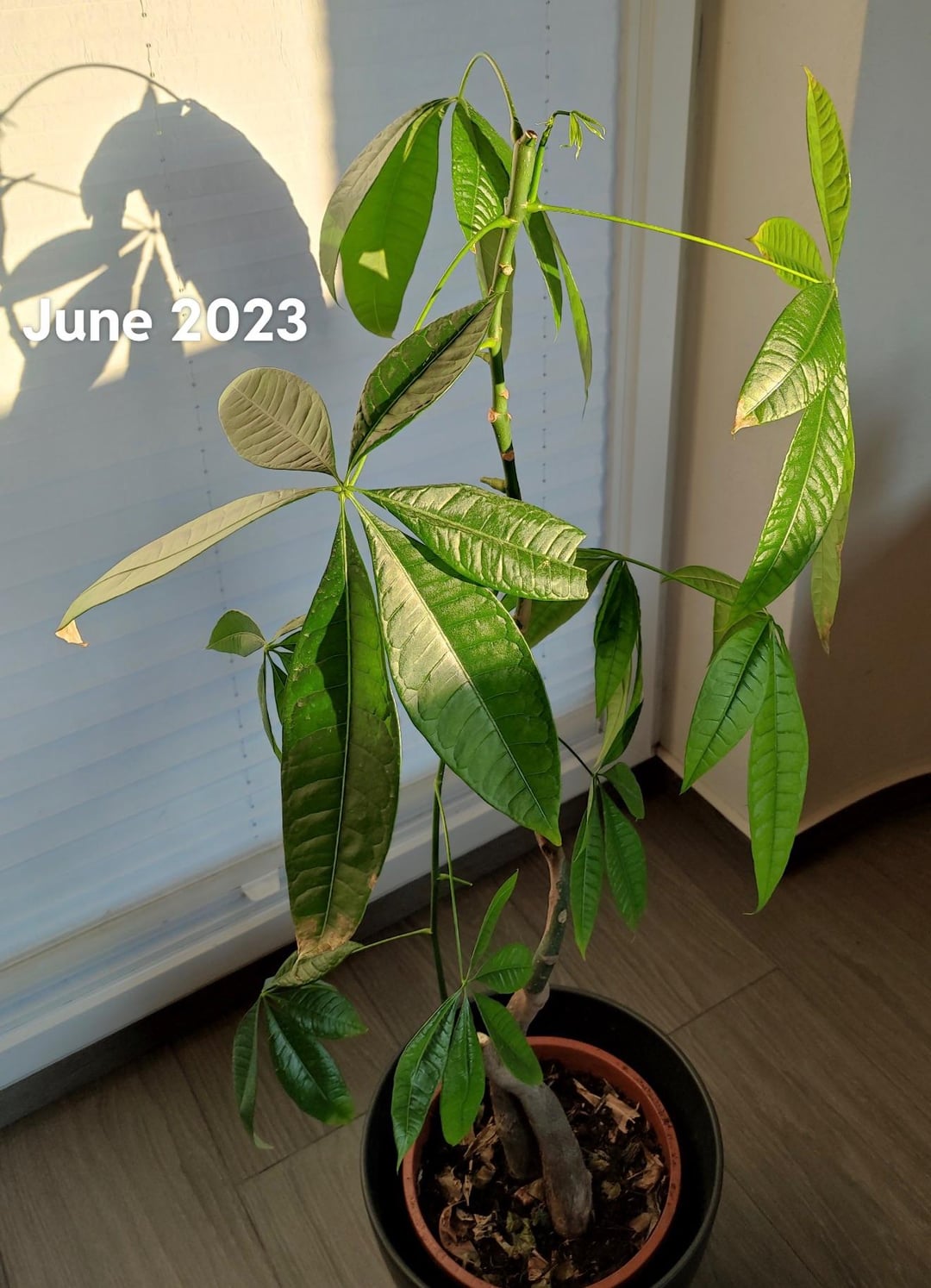 私のパキラ アクアティカはいくつかの変化を経験しました。元の5人のうち生き残ったのは2人だけだったので(おそらく)。植え替えて、黄色くなり始めた葉を取り除きました。