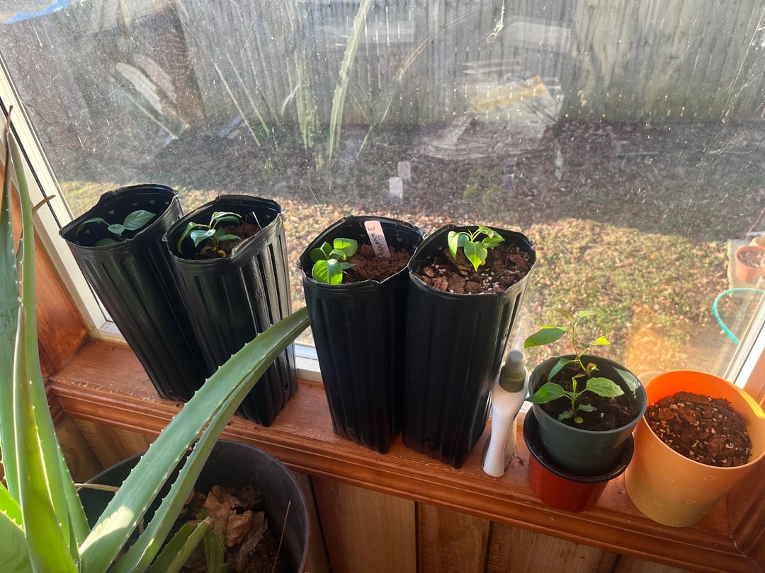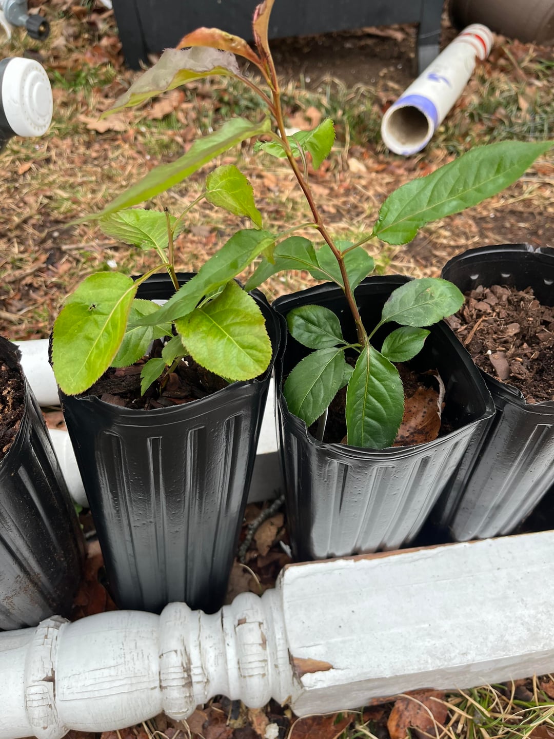 寒波が来るまでは大丈夫でした。目に見える霜はありませんでしたが、いくつかの植物は火傷のようなものになりました。まだまっすぐに成長している良いのが1本あります。他のものは根元で曲がっています。今年は成長させて、来年は実がなった梨を接ぎ木してみます。