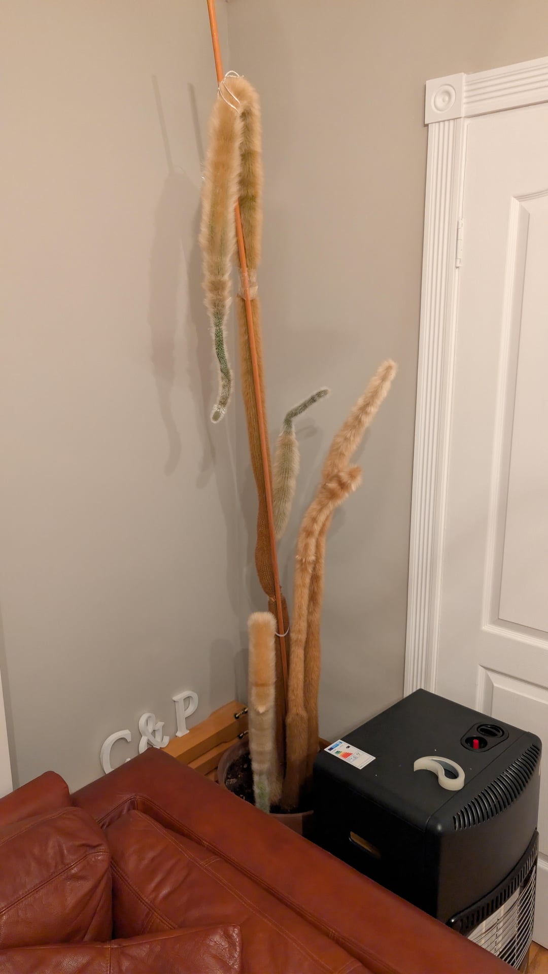私は37歳です。このサボテンは、私が3歳くらいのときにお店で買った小さな鉢植えのサボテンから始まりました。引っ越しにも耐え、壊れた部品はセロテープで留められ、天井に届きましたが、明らかに行き場がありません。ただのサボテンであることはわかっていますが、父を訪ねるときはいつも父の様子を見に行きます。だから、これには多少の感傷的な価値があります。彼女は私のすべての継母よりも長く生きています😂