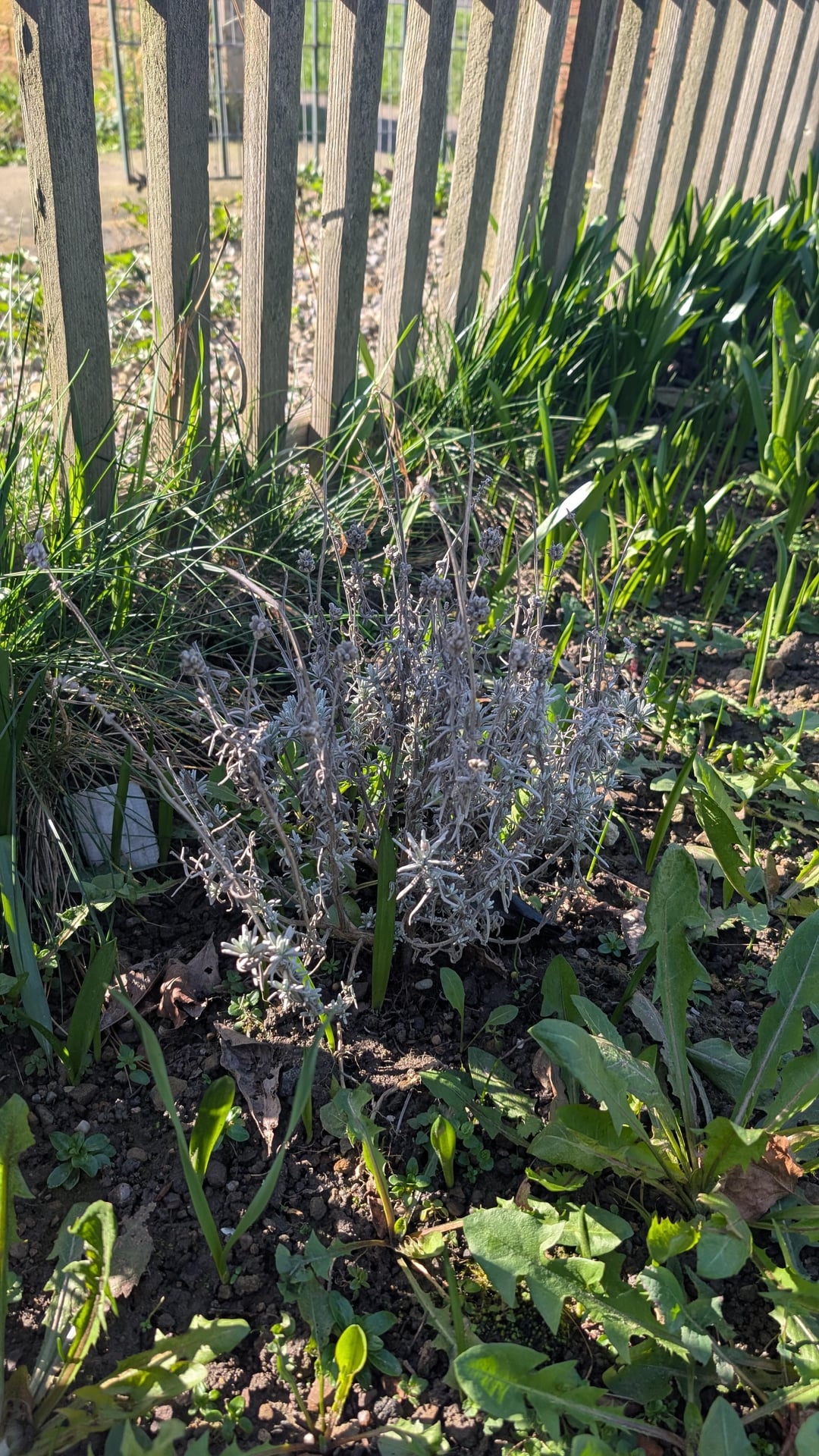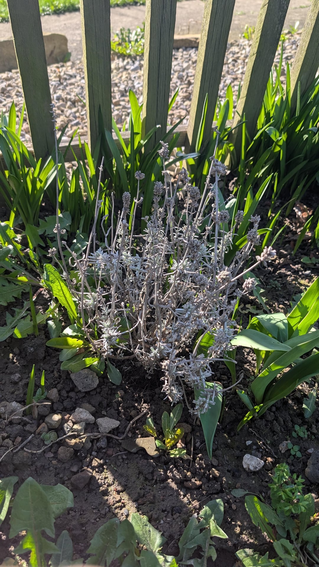 このラベンダーは枯れてしまったのでしょうか?そうでない場合、彼らが生き返るのを助けるために何ができるでしょうか?雑草を取る以外にも