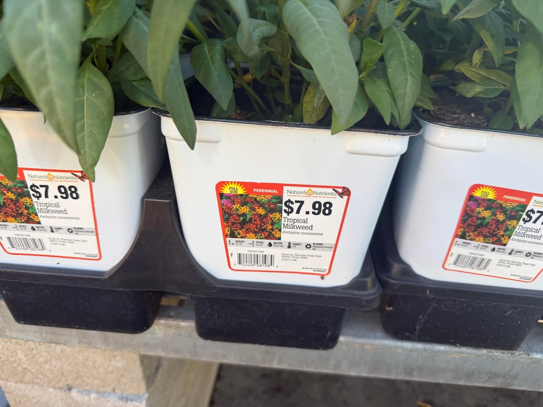ちょうど地元の金物店に行ったところ、(熱帯)トウワタが再入荷しているのを見つけました。スプレーされていないため「安全」であると宣伝されていました。これは、トウワタには「良い」品種と「悪い」品種があることは知っているものの、この問題には深く踏み込んでいない人々をなだめるための賢い方法のように感じられたので、私を悩ませました。