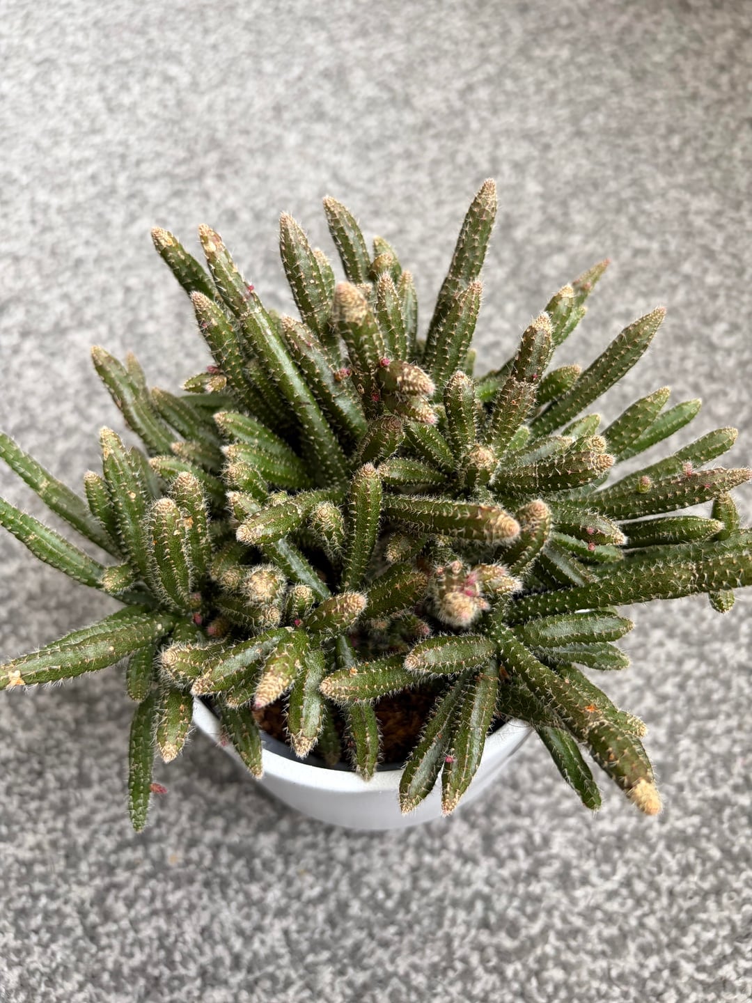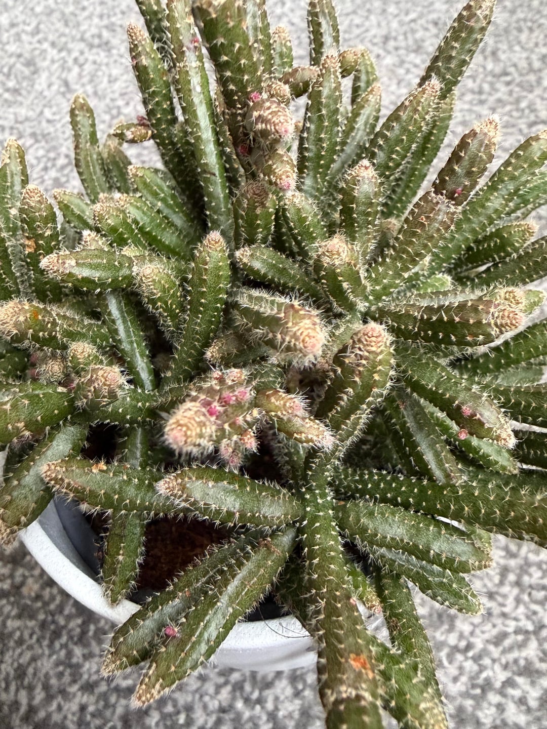 初めてのリプサリスですが、もしかしたら私の新たな夢中になるかもしれません。これはもしかしてネズミテールサボテンでしょうか?🤔 また、ピンク色の先端は新芽か花芽でしょうか?