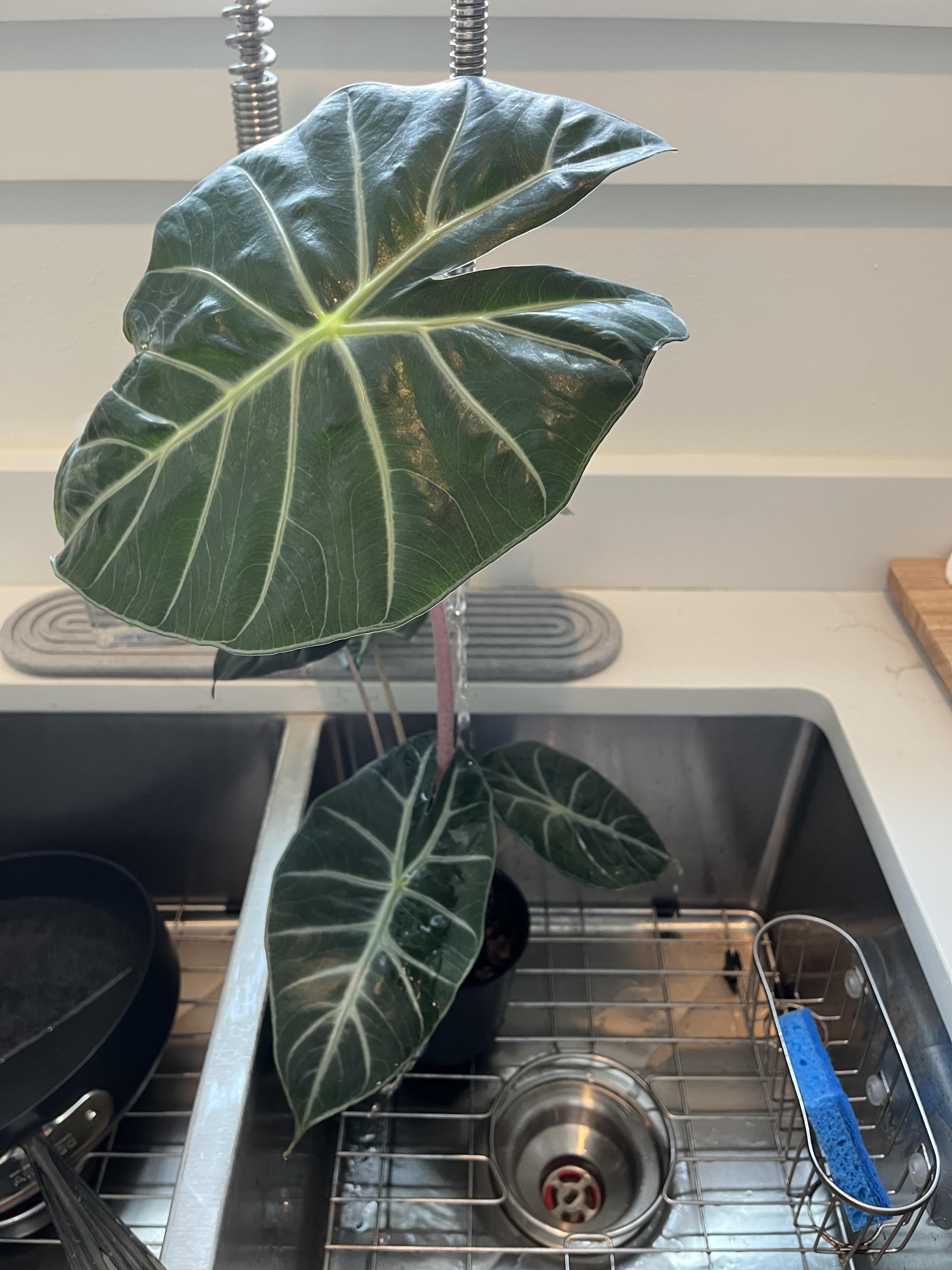 これをプレゼントされたので、苦労するだろうと思っていましたが、どうやらこの植物は喜んでいるみたいです。ご覧のとおり、元の葉はもっと小さく、この巨大な上部の葉は捨てられました。この時点では鉢が少し小さいので、この植物が成長し続けるために理想的なセットアップをしたいと思います。水、土、光の状況は網羅していると思うのですが、この植物にとってどんな家が良いでしょうか?