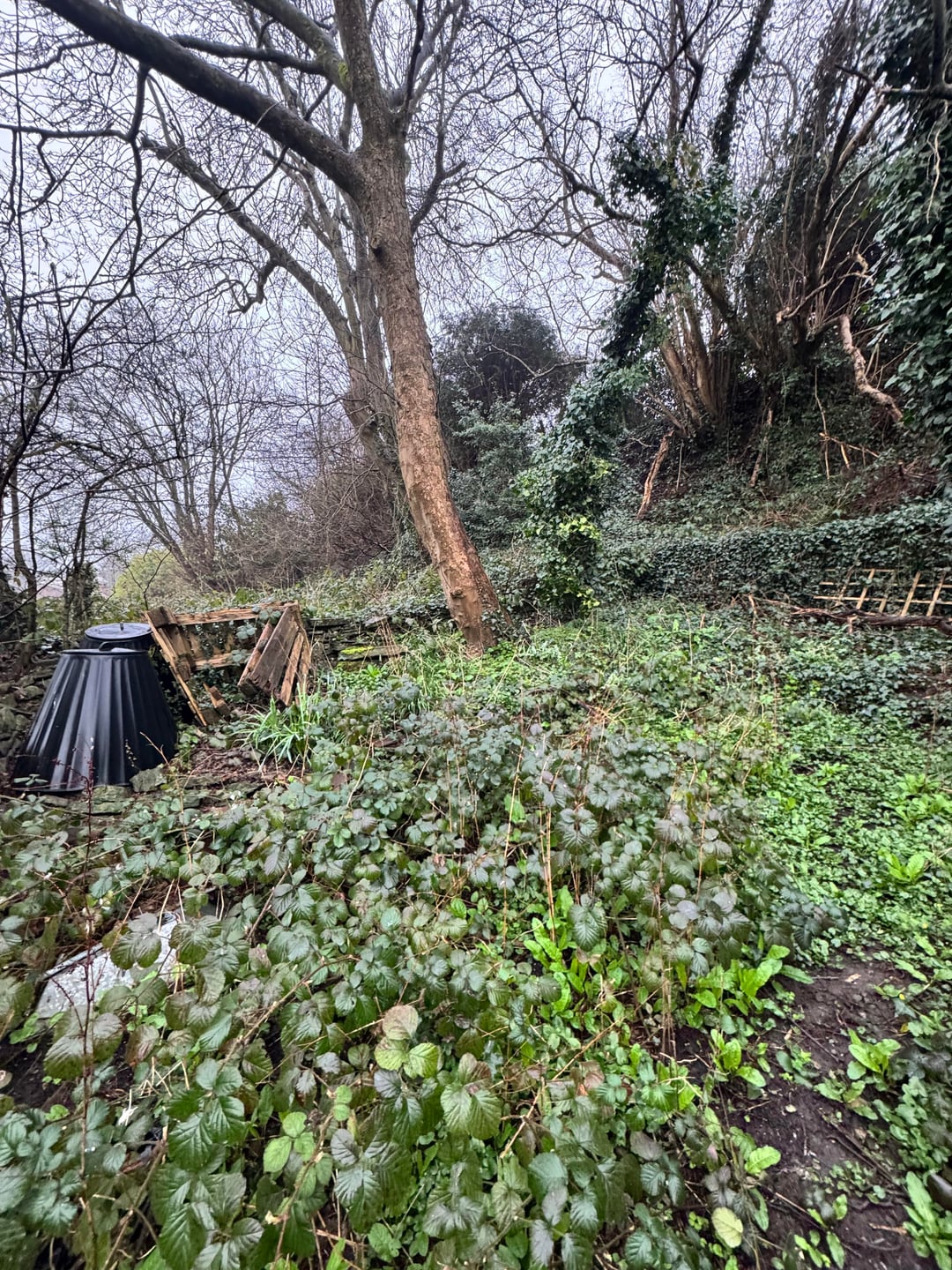 皆さんに道具や治療法についてどのようなアドバイスをいただけるだろうかと考えています。つまり、このスペースに芝生を植えるべきでしょうか?どうすればまたこのように増えすぎるのを止めることができますか?これは 8 月以来約 6 か月の成長です。これに取り組むにはどのようなツールを使用すればよいでしょうか (自由時間が限られているため、より速く、より高価なツールが理想的です)