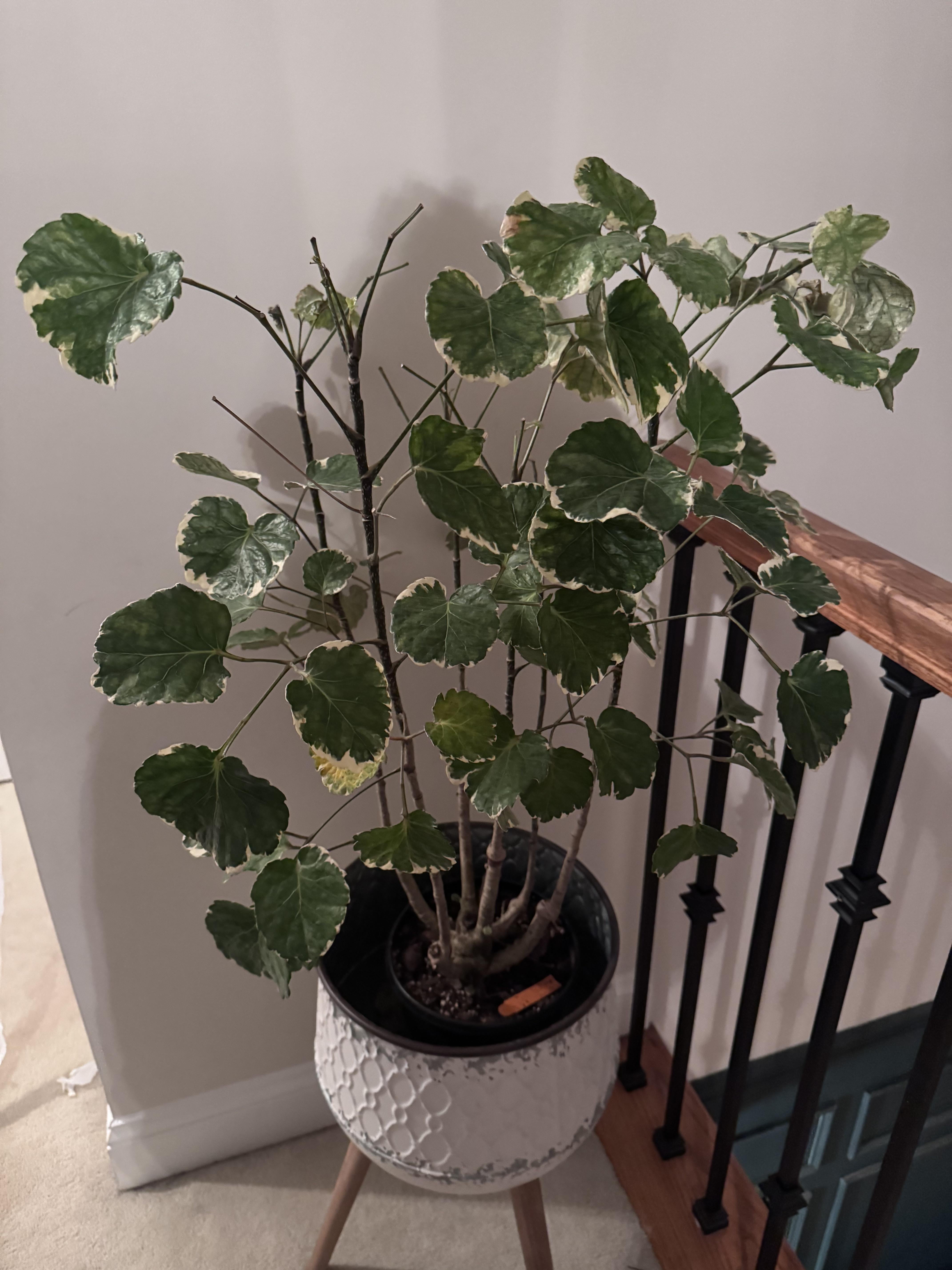このかわいそうな人を助けるために何ができるでしょうか? 10月に苗床から購入したので、水をたっぷり与えて鉢を一回り大きくするように言われ、そうしています。土が1.5~2センチくらい乾いたら水やりをしています。 18フィートのアーチ型天井の向かい側に位置し、6つの大きな南東向きの窓があるので、一日中安定した日光が当たります(写真は夜に撮ったので暗く見えます)。葉が大量に落ちてしまいましたが、満足していません。最初にそれを手に入れたとき、私はそれがどれほど豊かで豊かであるかが大好きでした。