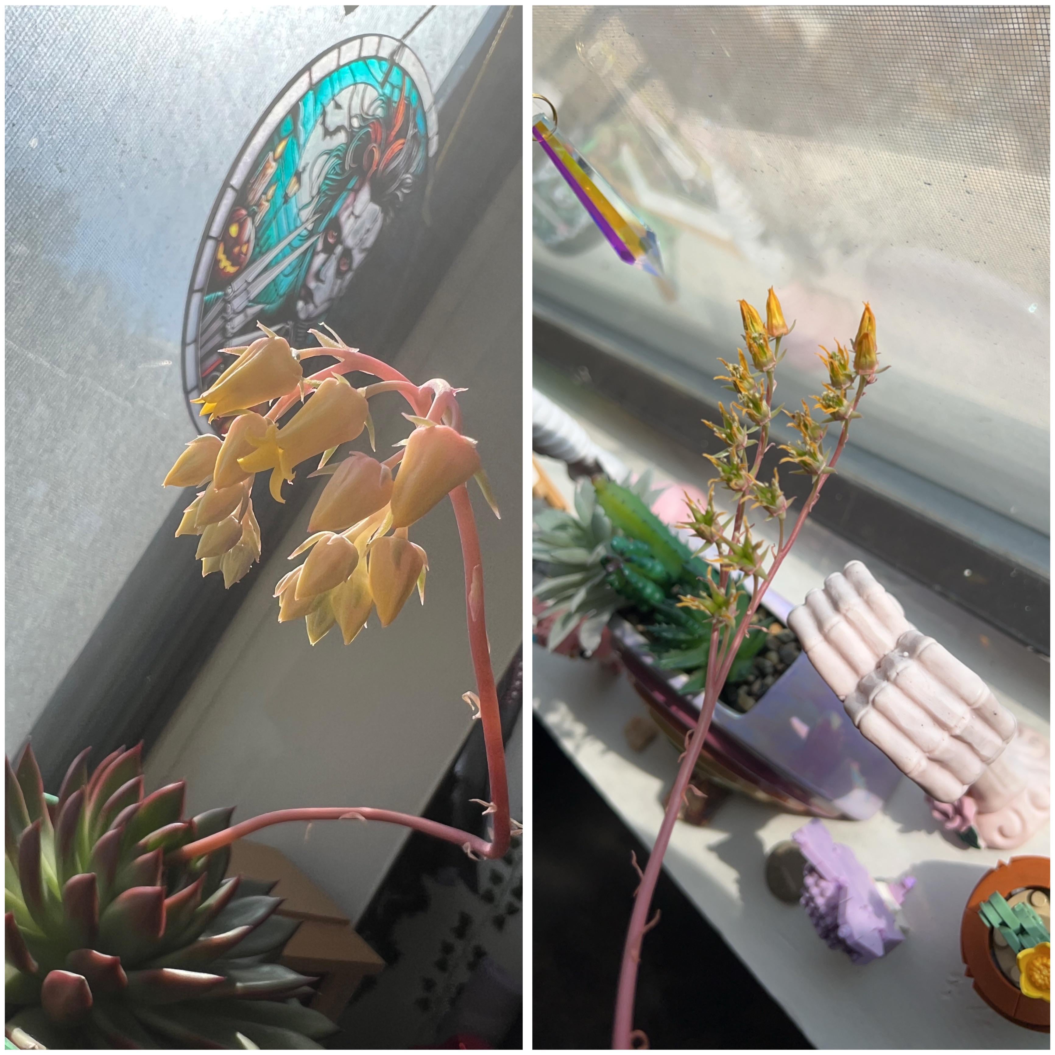 こんにちは、多肉植物のエケベリアが1月中旬頃から花を咲き始めました!とても楽しみだったのですが、花が咲ききる前に、このまましぼんでしまったのでしょうか?先月、私の地域で続いている冬の嵐と日照不足が影響しているのではないかと思います。これは私にとって初めての観葉植物で、多肉植物がこのように花を咲かせることさえ知らなかったので、花が咲くのを見るのはとても興奮しました。彼らを復活させるために私にできることはありますか?そうでない場合は、どうすればよいですか?それらをトリミングしますか、それともそのままにしておきますか?より良い結果を得るために、次回何か違うことをすべきことはありますか?あらゆるアドバイスをいただければ幸いです☺️