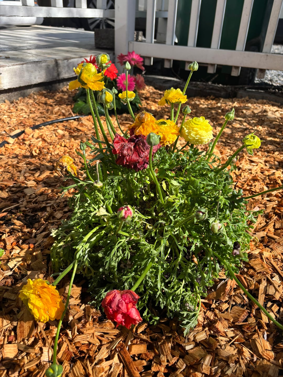 4日ほど前にこれらを地面に植えたのですが、花はしおれていてあまり幸せではないようです。土の中で物を生き続けさせようとするのは初めてで、何が問題なのかわかりません。毎日水やりをしていて、初日の水やりにはミラクルグローを使いました。私の懸念は、十分な光が得られていないことでしょうか?それとも水が足りているのでしょうか?ガーバーデイジーをその隣に植えましたが、ラナンキュラスと同じ手順で、まだゴージャスに見えます。これらを保存するためのヒントはありますか?