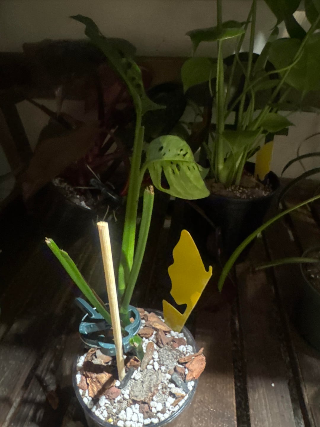 したがって、私は植物についてはかなり初心者であり、少なくとも植物の世話を適切に行うことはできません。私は最近たくさんの新しいものを購入しましたが、それが私の現在の執着であり、とても気に入っています。とにかく、しばらくの間、それらは私が苗床/店で購入した非常に泥炭の重い土壌に置かれていました。彼らは長い間水を保持していました。それらはすべて非常に順調で、新しい成長を促していましたが、大きすぎる鉢のいくつかの周りに菌類のブヨが発生していることに気づき、大幅にサイズを縮小することに決め、私のコレクションの多くが根腐れを起こしました。そこで、パーライト、熱帯土、蘭を 1:1:1 で混ぜたものにすべて植え替えました。とにかく、いつもより垂れ下がっている人もいて、パニックになっています。私はこの赤ちゃんたちに多くの時間とお金を投資してきましたが、これが通常の移植ショックであることを願っています。また、それらの多くは根腐れを起こしていたので、過酸化水素で治療しました。今、私は迷っています。水やりを待つべきでしょうか?もう48時間近く経ちますが、あまり喉が渇いてほしくないのです。アドバイスのために私のセットアップの写真もいくつか追加しました。最も心配しているのはスイスチーズモンスターをドロップすることです
