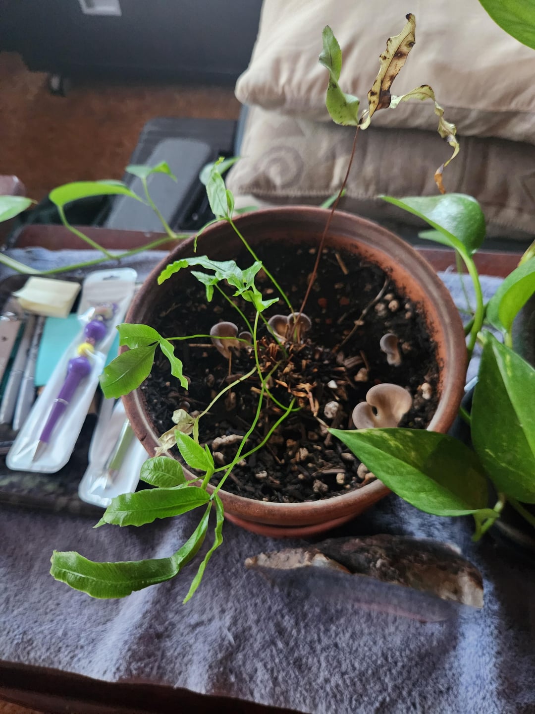これらのキノコは、私が保存しようとしていたこのシダの中にどこからともなく生えてきました。 ID を持っている人がいますが、削除する必要がありますか?必要な場合以外はやめたほうがいいです – 私はムシエの友達が大好きです!