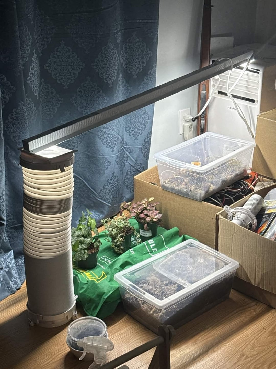 こんにちは、私は数日前にこのフィットニア (神経植物) を購入したばかりで、いつかパルダリウムで増やす予定です。水と光をたっぷり与えています (そう願っています)。何か間違ったことをしているようです。また、いくつかの葉に小さな穴がいくつかあることに気付きました :/ 私はこの植物が大好きなので、みんなが助けてくれることを本当に願っています (私の植物のセットアップを批判しないでください。私の机が壊れて、引っ越したばかりなので、これが私にできる最善のことです笑)