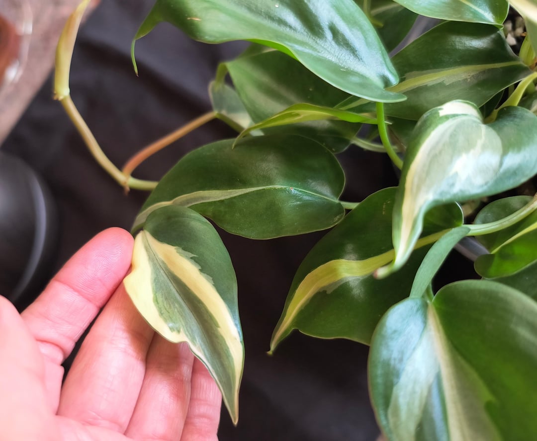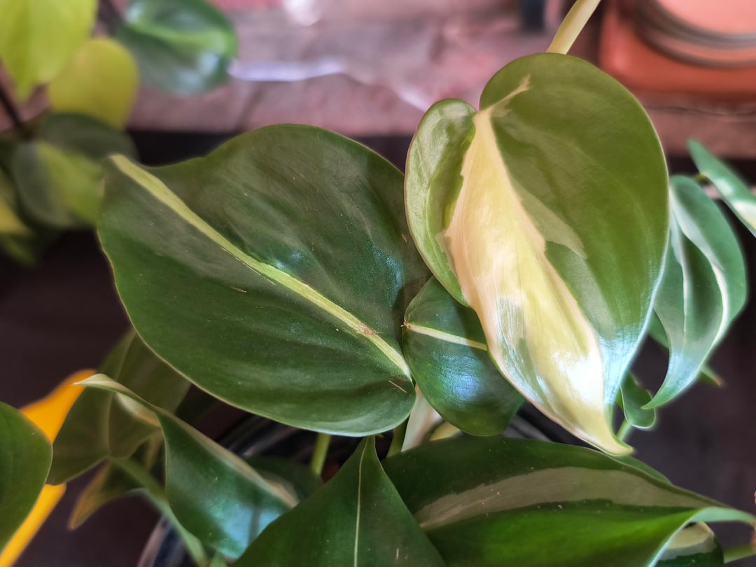 日中植物を日よけの布の下に屋外に置いた状態から、今は育成ライトの下に置くようにしたときの斑入りの変化。私のリオとシルバーストライプは人工光を好むと思います 😄。