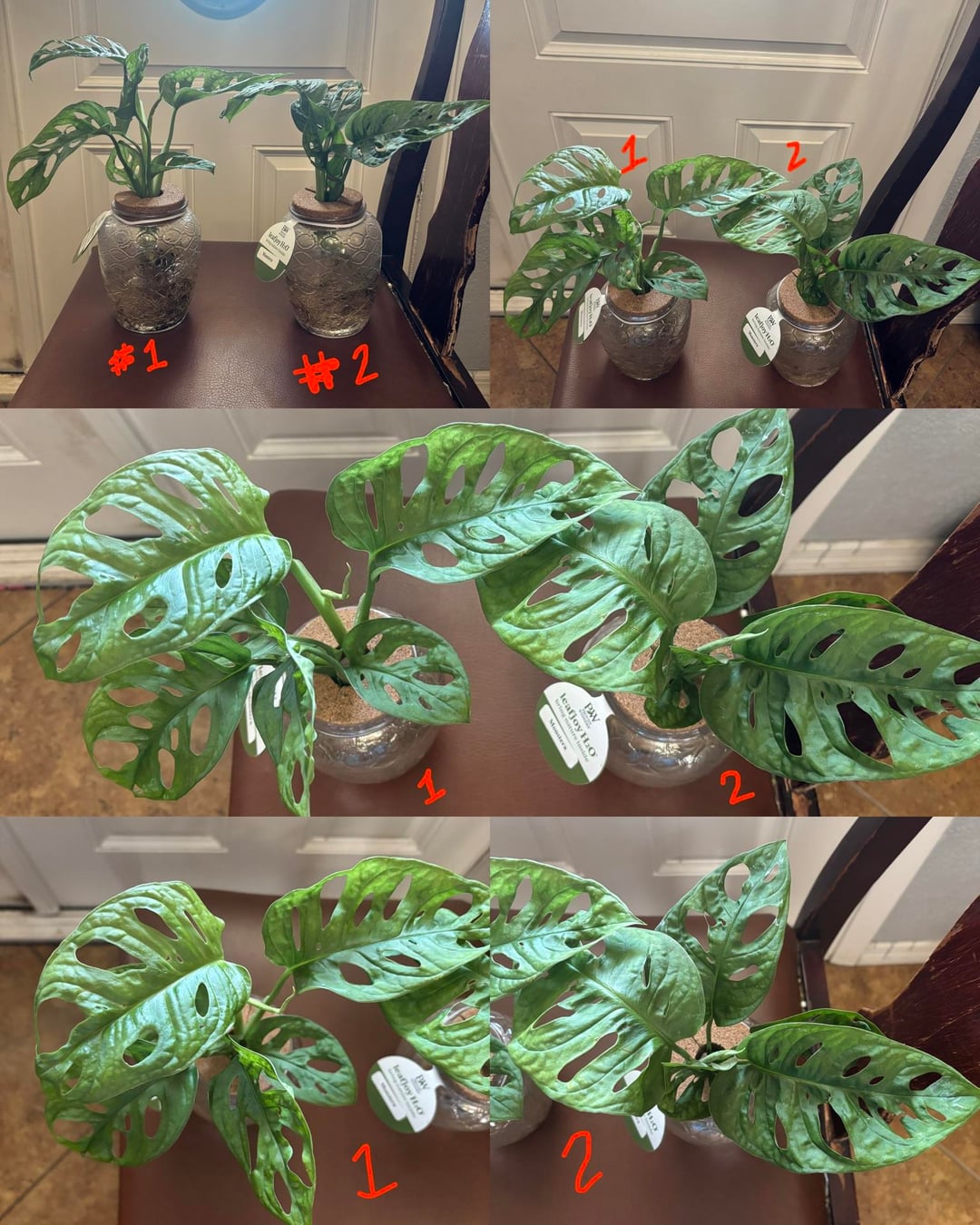 見た目、根、茎・葉から判断! #1 は、葉が少し黄色くなっていますが、茎が長く、葉の数も多くなっています。 #2 の葉は色が濃いですが、茎が短く、葉の数が少ないです。