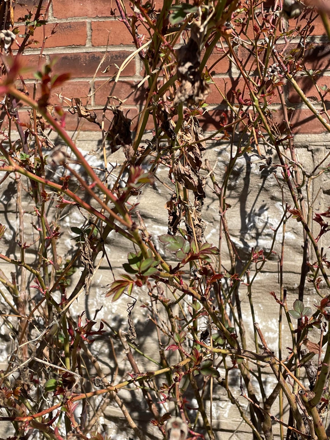 私はバラを扱うのは初めてなので、バラを殺したり、ショックを与えたりしたくないのですが、友人は、プレジデントデーの頃にバラを膝の長さまで切り戻すべきだと言いました。今日最初の2枚の写真を撮りましたが、すでに新しい成長が見られます。ショックを与えずに切り戻すには遅すぎますか?そして膝丈は攻撃的すぎますか?ちなみに、私は春の気温の変動が激しい米国ミズーリ州セントルイスにいます。