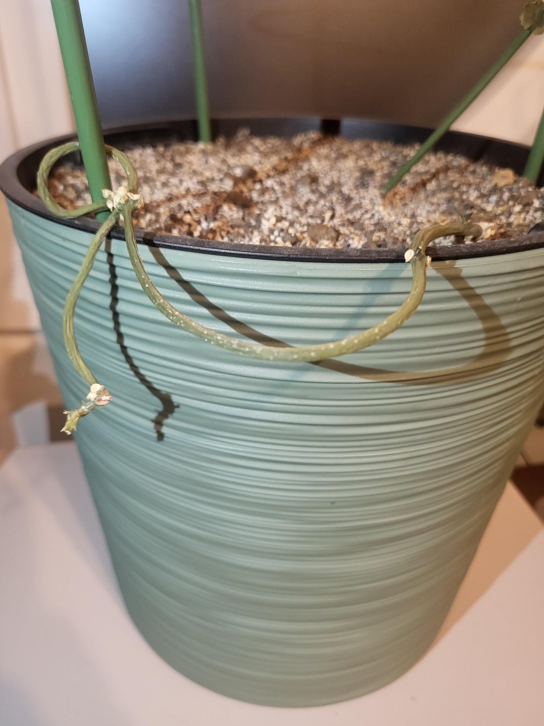 最近、アフリカンパラシュートの低い茎に白い斑点がいくつか現れました。これが何なのか、そして私に何ができるのか知っている人はいますか?