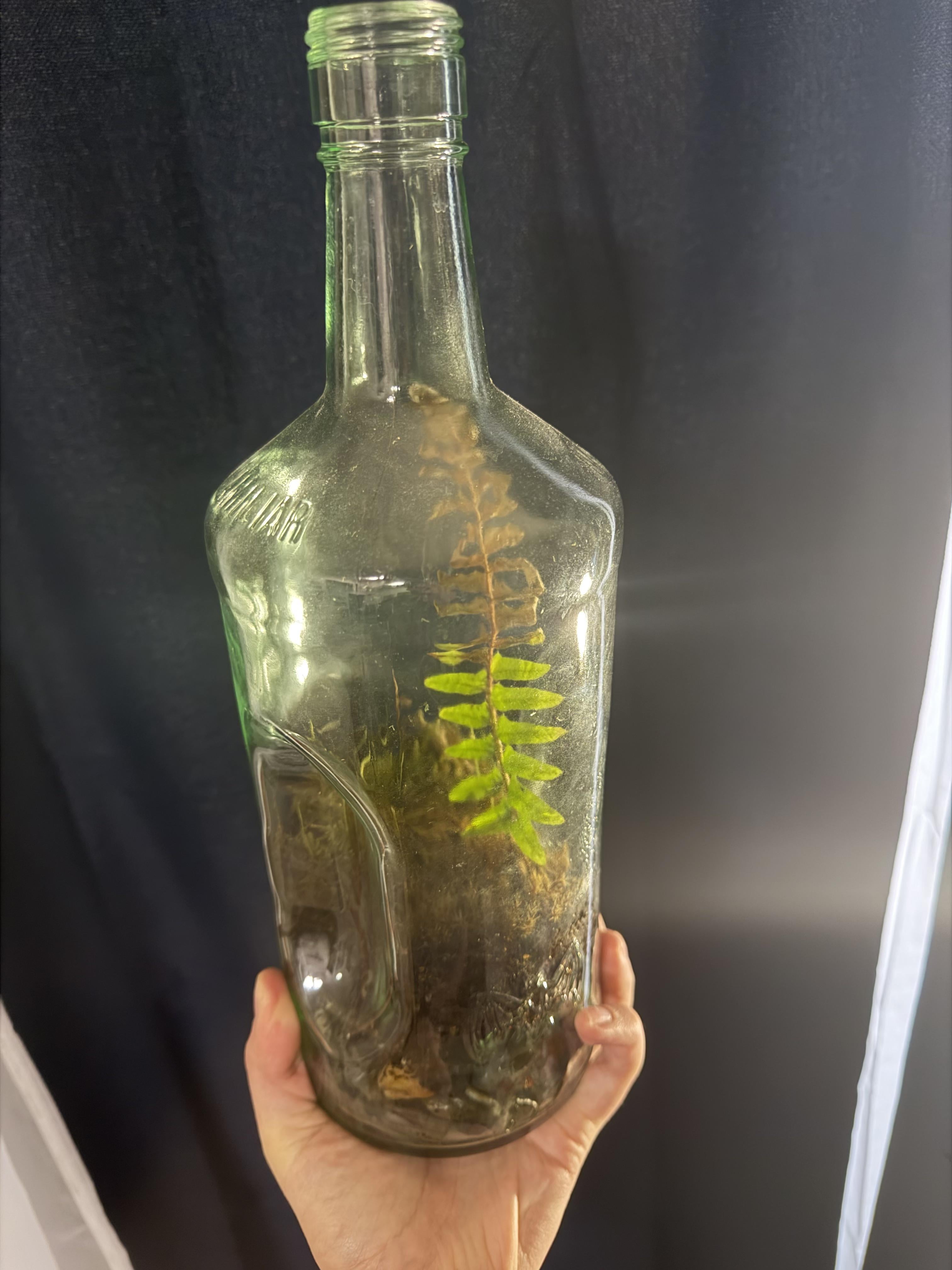 このシダを救う方法はありますか?それとも、このような容器の中で生きていくことを意図していないのでしょうか? 1年ほど置いてありますが、上半分は茶色くなっています:(