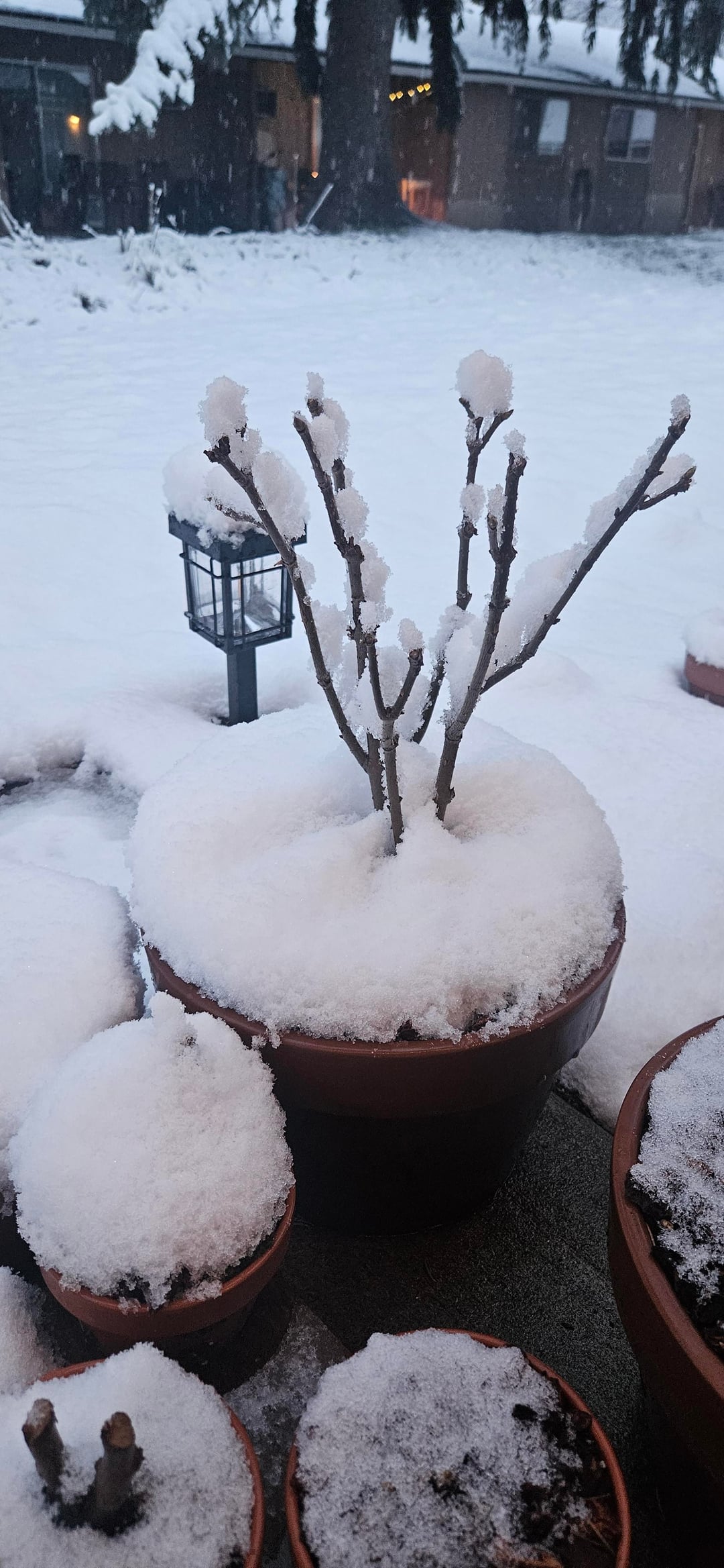 昨日、ハンガリーライラックの最初の数個のつぼみが開き始めているのに気づき、春が待ち遠しく感じました。今日起きたら雪で覆われていました。ゾーン6a
