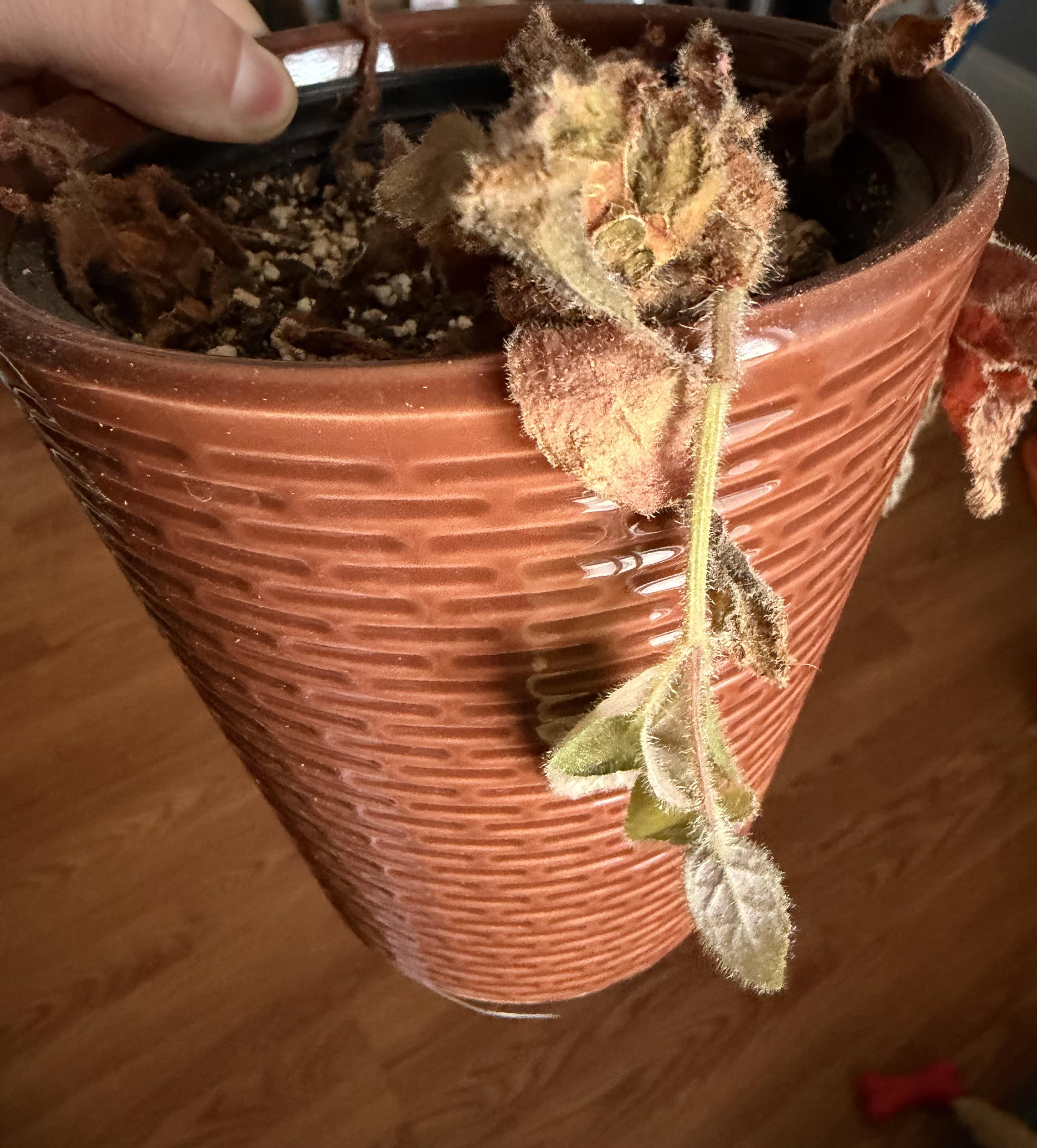 私は間違ったことをして殺してしまうのではないかと怖くて、この植物が枯れていくのをずっと見てきました。何もしないことも明らかに致命的です。私は、正しい方法で取り組む方法を実際に研究するのに十分な時間ができるまで待つ必要があると自分に言い続けました。 それは、祖母が私にくれた挿し木から来ました(彼女の母親、つまり私の曾祖母が所有していた植物から)。 今、祖母が亡くなり、この最後の小さな緑色の部分を良い状態に戻したいという急務を感じています。 ここにいる誰かが助けてくれますか?何かの紫だと思います