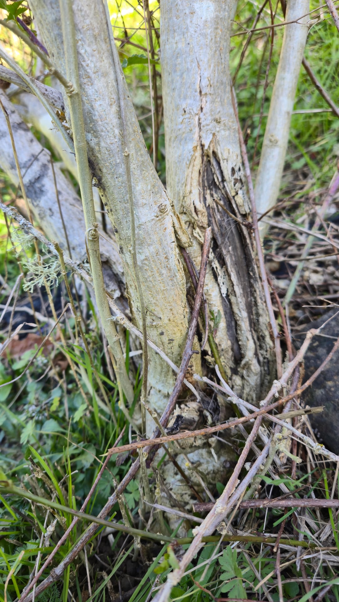 写真の植物はグループの中で最も健康的な植物で、昨年は見事に茂っていました。健康のために剪定したいのですが、それでも傷んだ枝や根元がたくさんあるので、病気になったり傷んだりした枝を取り除くと、本当に植物を切り刻んでしまうことになります。続行方法がわかりませんか?何が原因なのでしょうか?ただ湿気が多すぎるのでしょうか?残念なことに、いくつかの問題は明らかに昨年の熱心な雑草叩きによって引き起こされたものですが、明らかな黒腐れが見られない植物でさえ、大量の地衣類が蓄積していたり、樹皮が剥がれていたり、新しい成長を伸ばすのに非常に苦労していたりします。