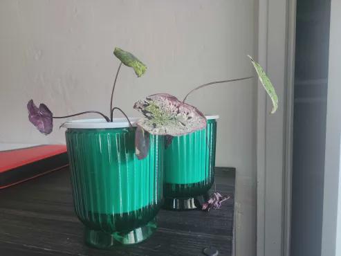 私はこれら 2 つのタロイモ モヒート スターターを入手しましたが、これらの自動給水ポットでしばらくは非常にうまくいっていました。まだかなり小さいので、どうやっても一度に葉が1~3枚しかつきません。