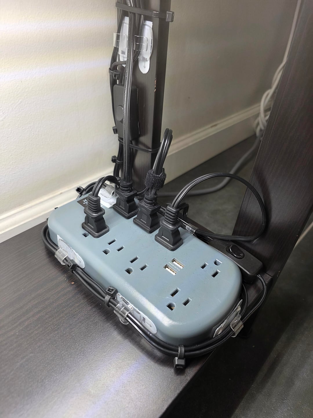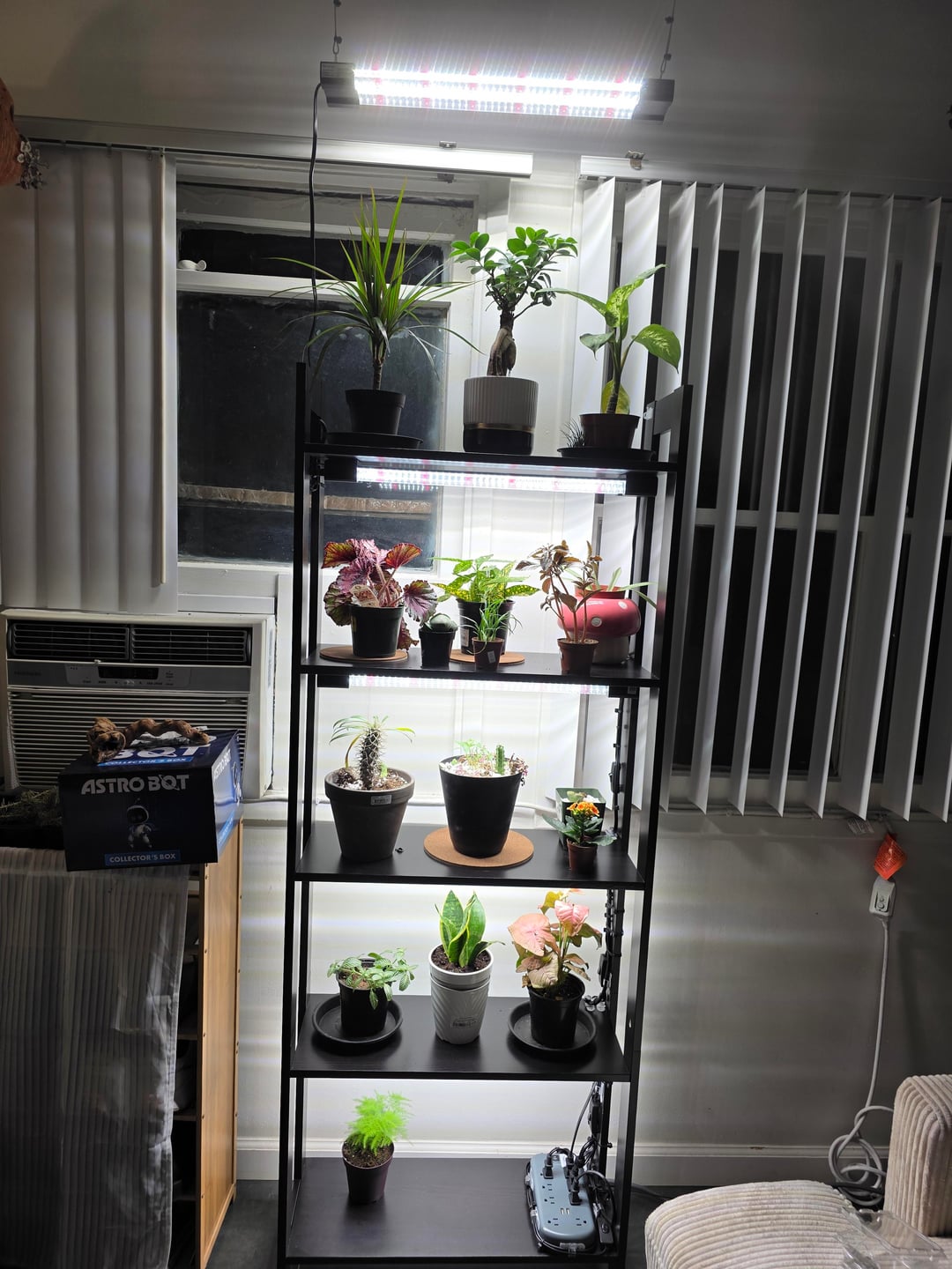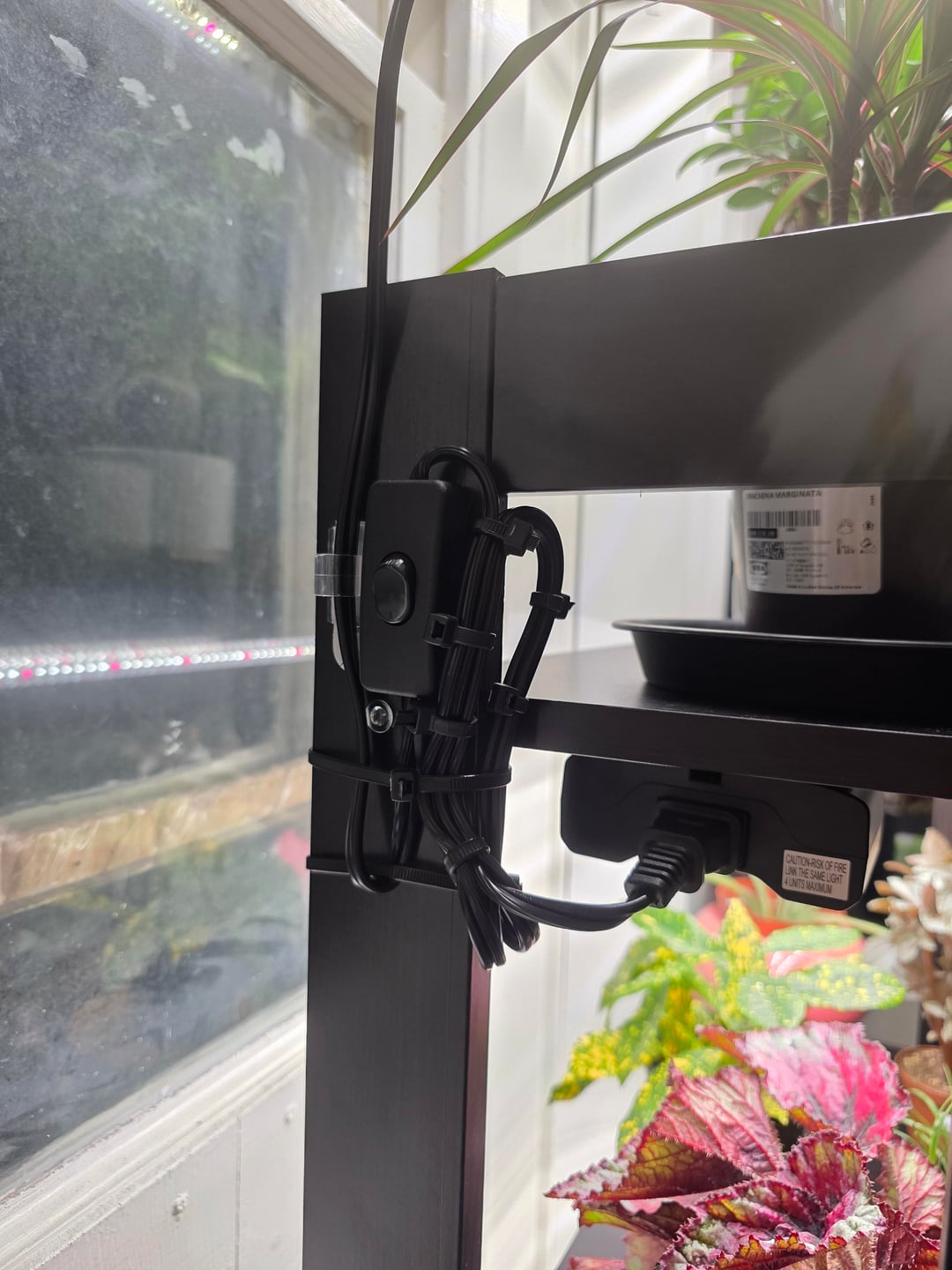 イケアの棚: $50 DLL x5 $21 HD のライトを育てる: $110 DLL サムの電源コンセント: $25 DLL コマンダー フック – 6 個: $7 DLL コマンダー ケーブル ガイド: $12 DLL 100ct 結束バンド: $15