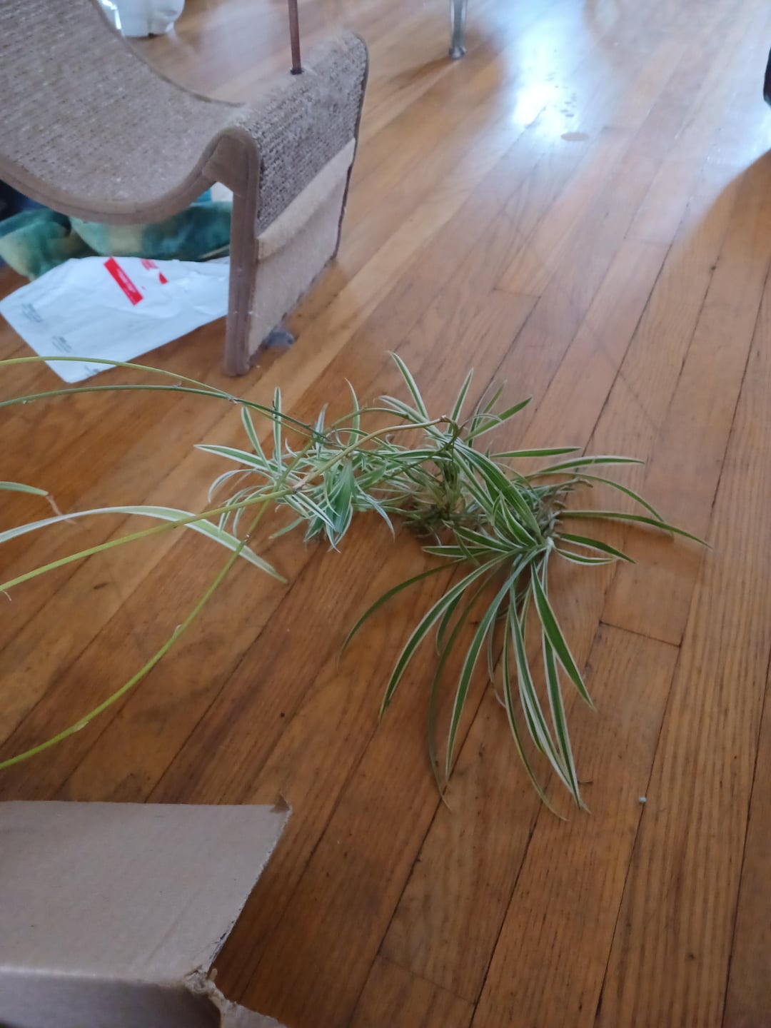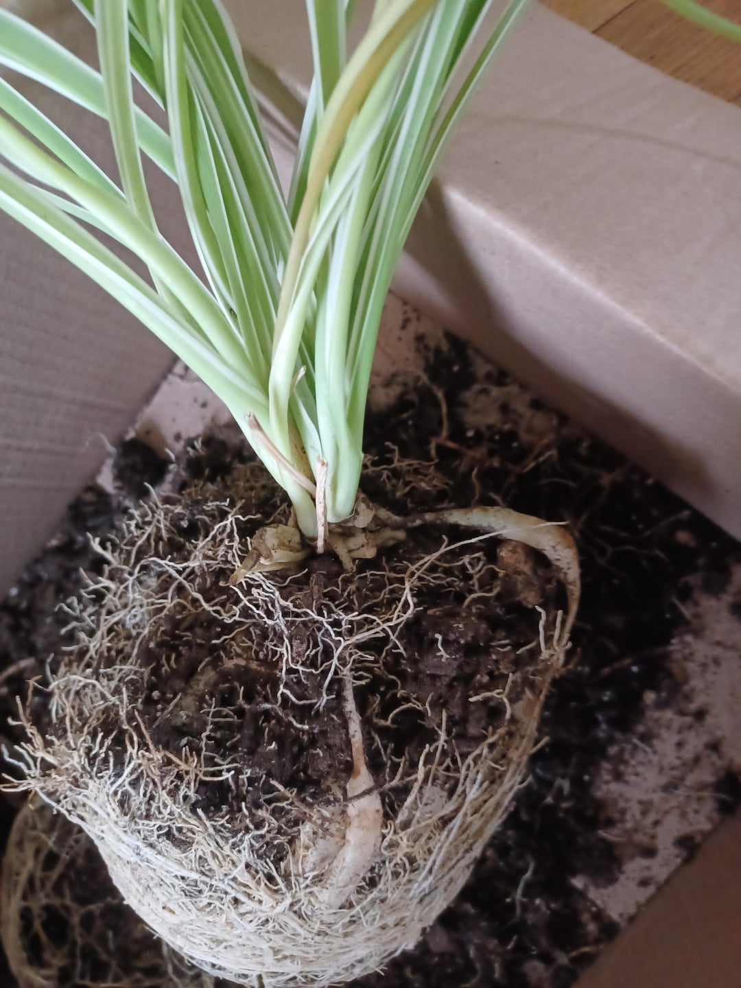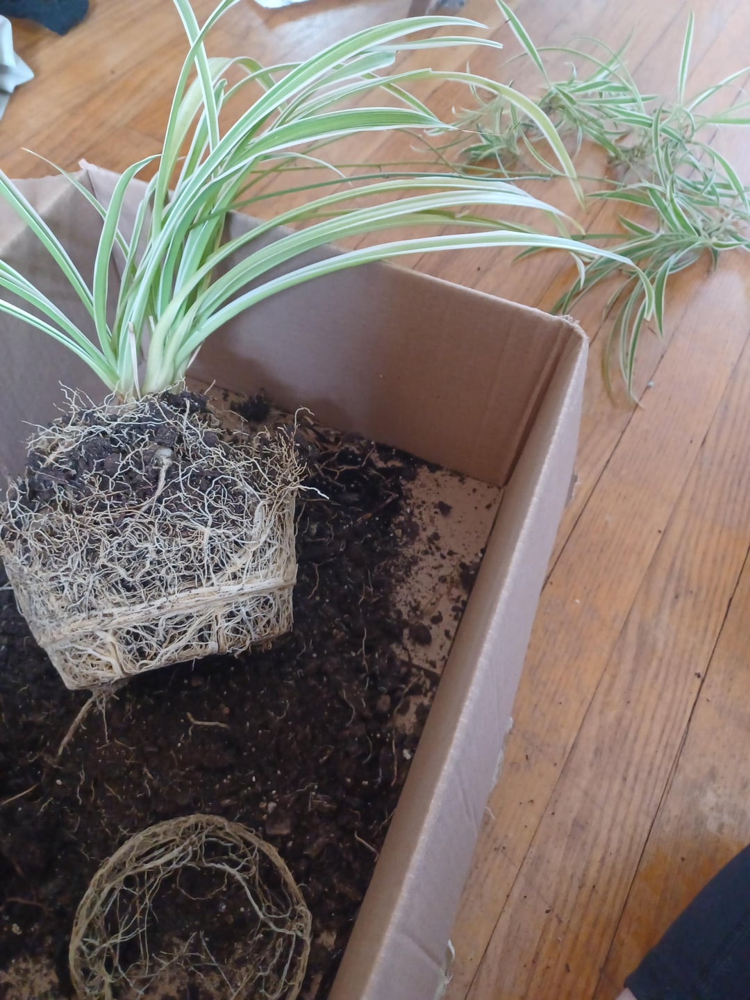 私はこのクモの植物の土を変えようとしています。上から見ると鉢のサイズはまったく問題ないように見えました(彼女は非常に脚の長い女性です)。