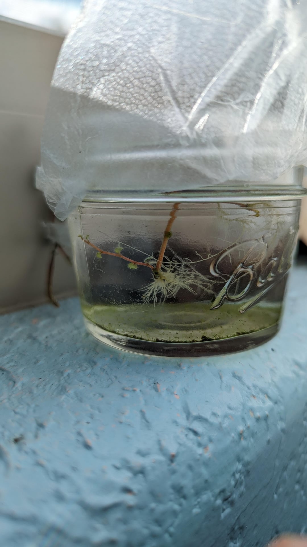 根が伸びるまで植えるのを待ったほうがいいのでしょうか、それともそのまま植えたほうがいいのでしょうか? この瓶に詰めて以来、たくさんの新しい芽が押し出されてきました。