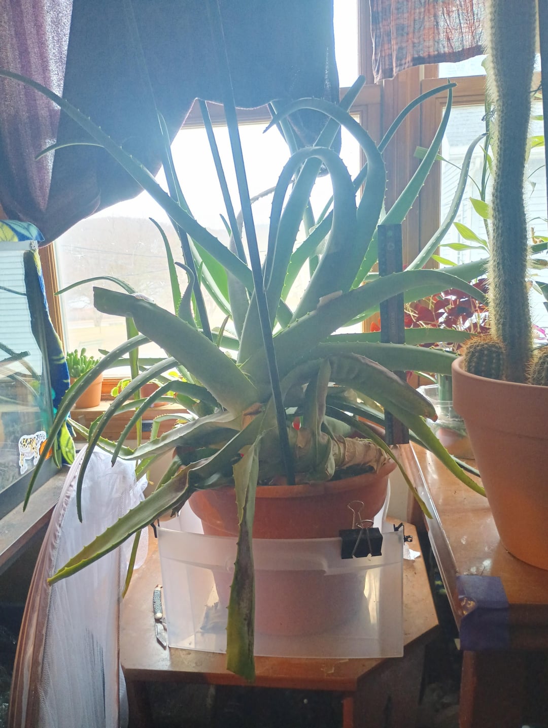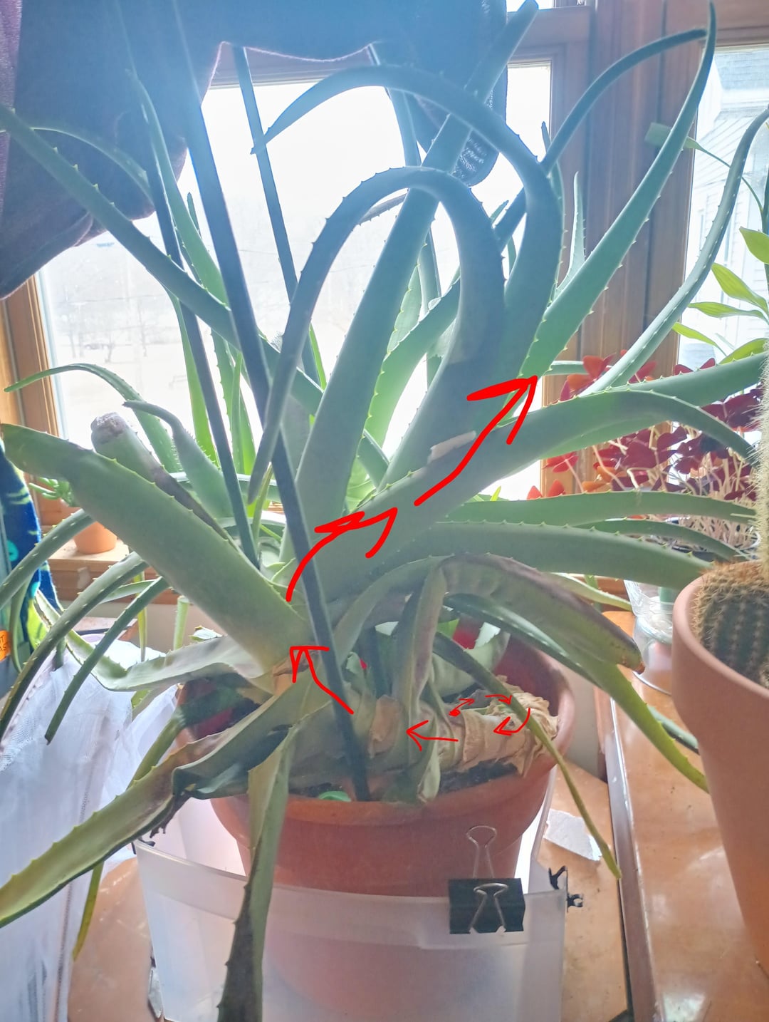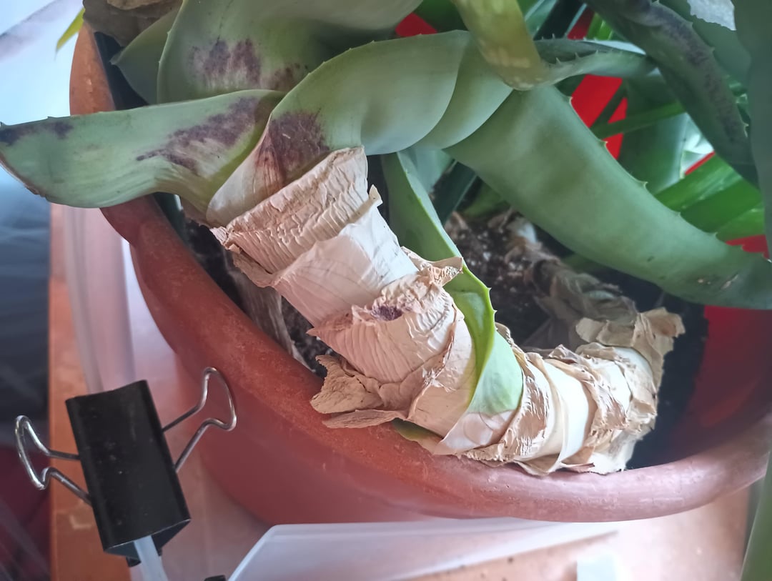 私はこのアロエを軽く12年間飼っています。彼女は最も健康的ではありませんが、私は彼女を死ぬほど愛しています。最近、彼女の4匹の子犬のうちの1匹を取り除きに行ったのですが、残っていたわずかな土が岩のように硬くなり、子犬が成長している今、彼女の鉢が非常に過密になっていることに気づきました…彼女を殺さずに植え替える方法はありますか、それともこの時点で彼女がいる鉢に入れたままにしておくべきですか? 3枚目の写真の目盛り用の定規です。