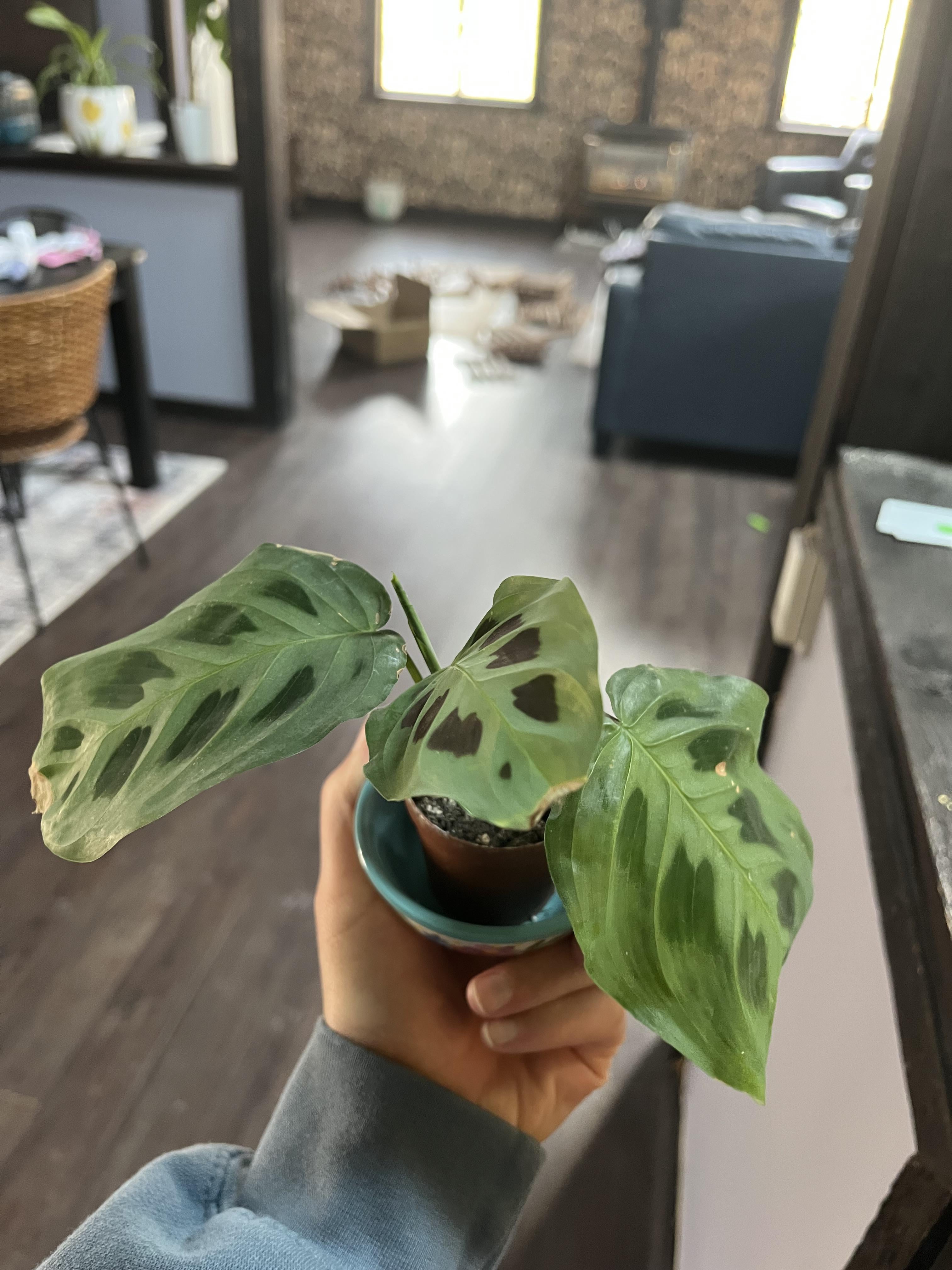 生まれたばかりの赤ちゃんを自慢したかっただけです!数か月前にロウズでママの苗木を買ってきたのですが、植え替えているときにこの小さな部分を折ってしまいました。見たところ節がなかったので、損したと思いましたが、とりあえず水に漬けておきました。残念なことに、彼女は1〜2週間後に発根し始めました、そして私はちょうど1週間前にこの小さな鉢に彼女を植えたばかりです。彼女はとても幸せです!新しい葉がすでに成長しています!彼女が店から来たときの様子なので、彼女の葉は少しカリカリしていますが、彼女とママの植物の新しい葉はすべて新鮮になっています。祈りの植物は最高です!