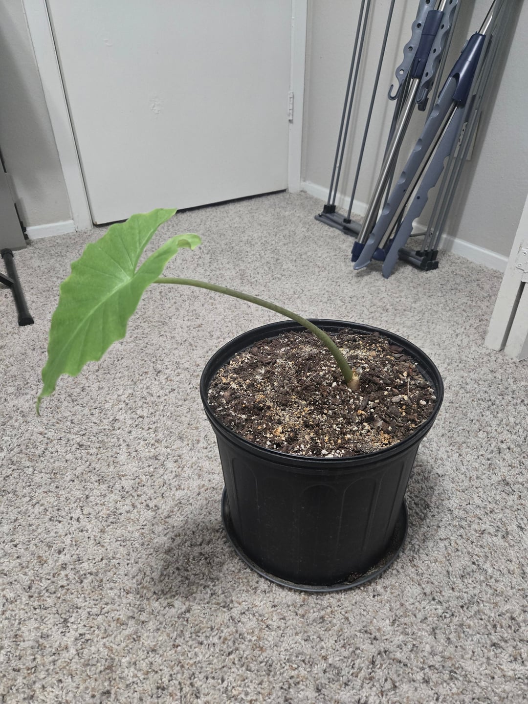 クワズイモ:これは以前は葉が3~4枚ある巨大なものでした。現在、葉は一度に1枚ずつ成長し、新しい葉が展開し終わるとすぐに古い葉を枯らしてしまいます。私が他のすべてを無視し始める前に、それは自動的に死んでいたので、ここで何が起こっているのか本当にわかりません。小さくなった植物に合う小さな鉢に植え替えますか?