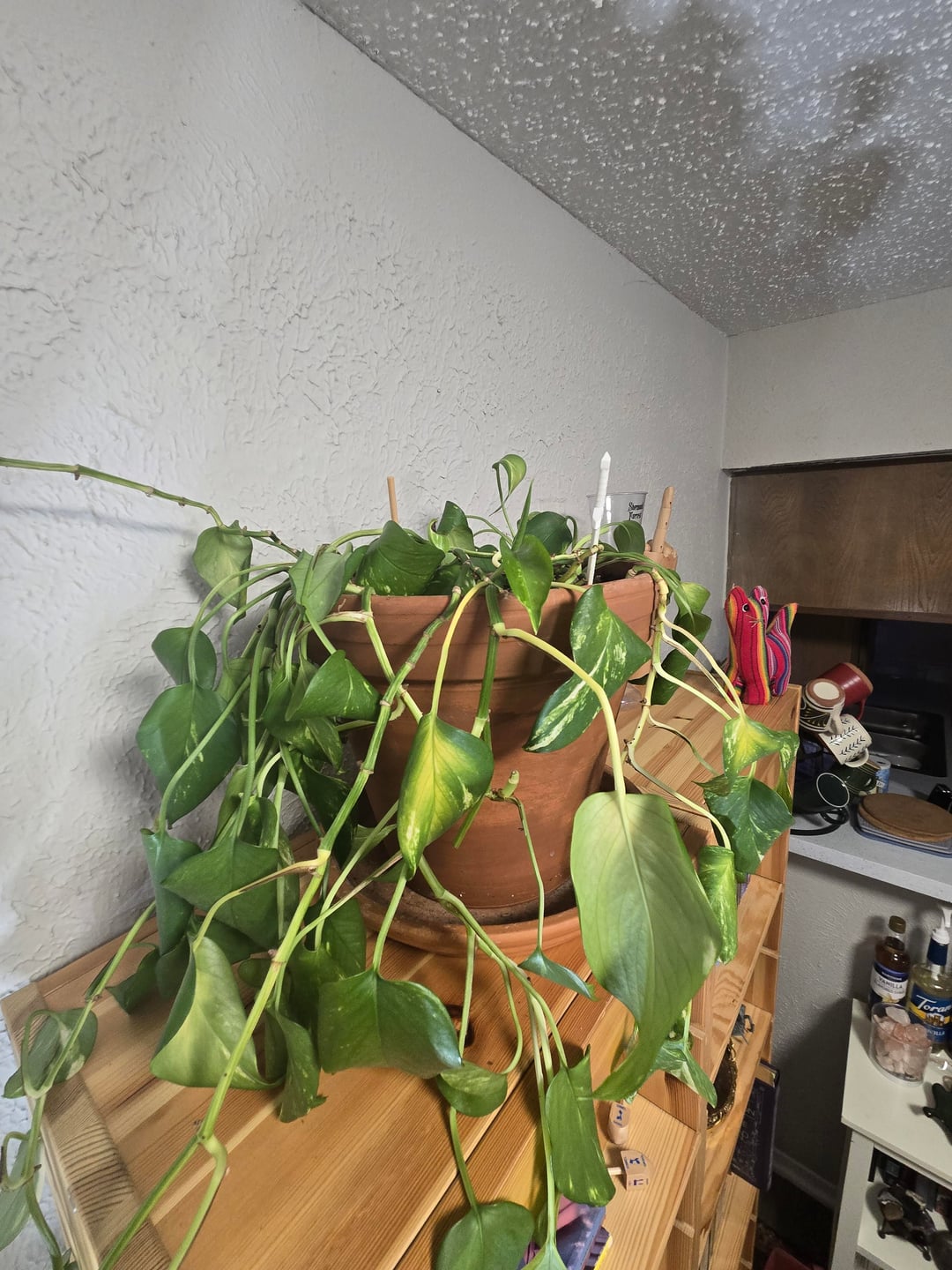 ポトス:黄色く枯れた葉はもう全部摘み取りました。本当に長い蔓を切る以外は何もするつもりはありません。