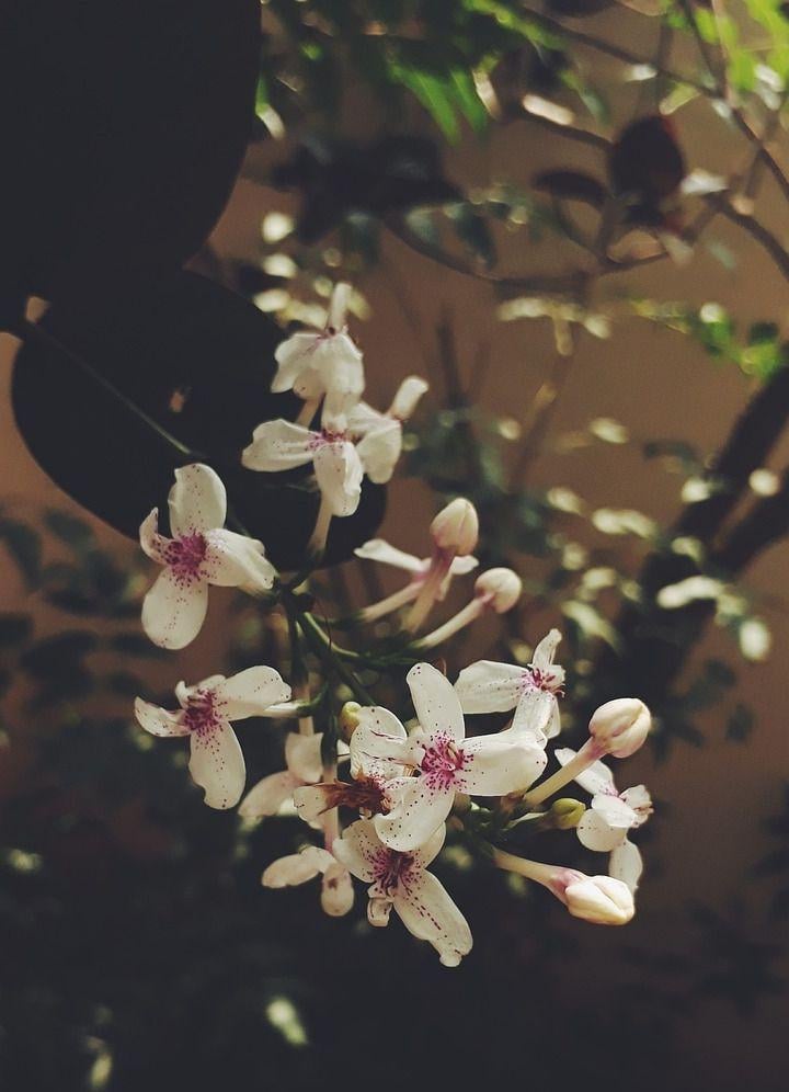 太陽の光を楽しむ小さな白い花。