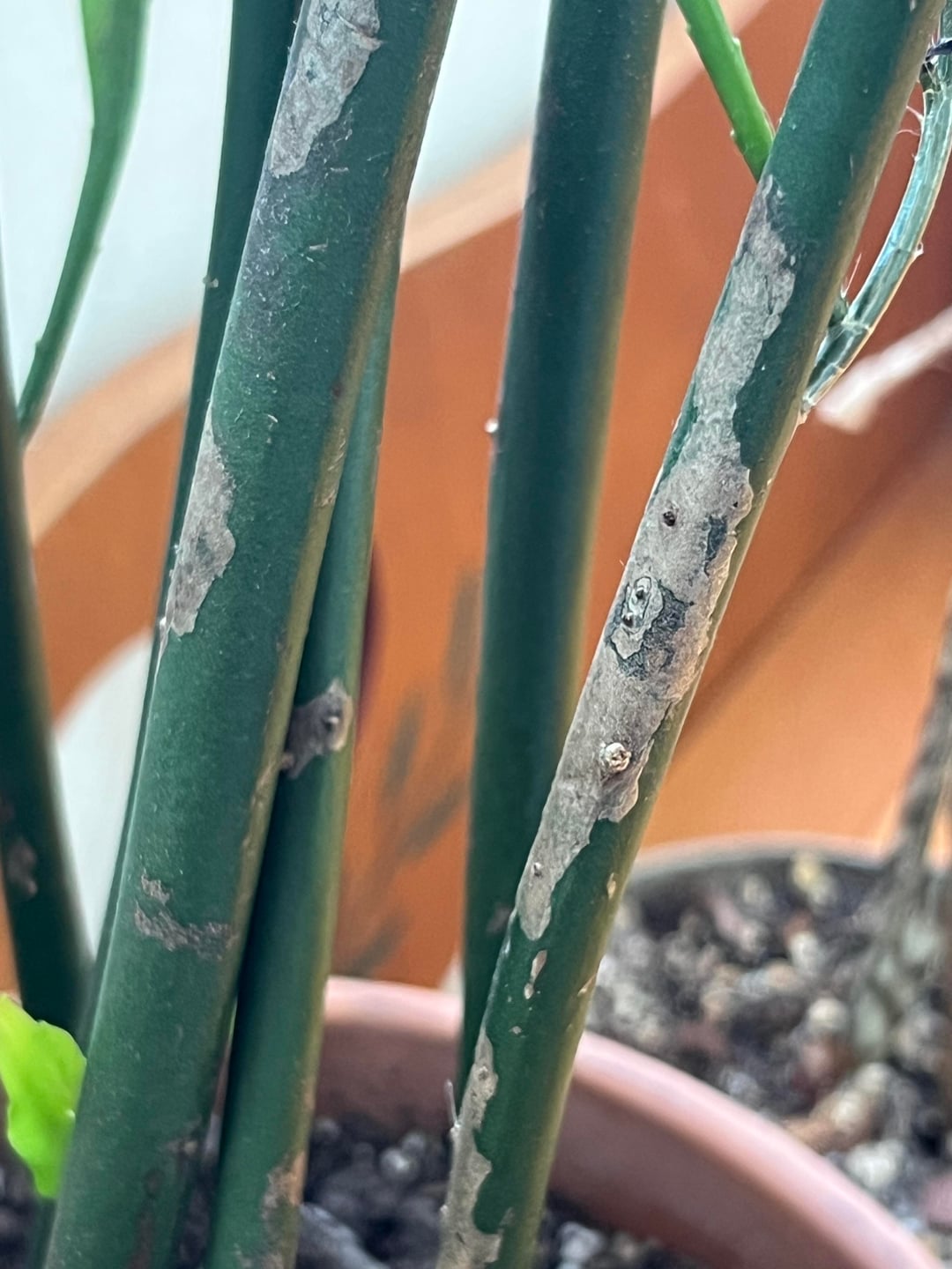 私の夜咲きセレウスに何が起こっているのか分かりません! 1年ほど飼っていて、たくさんの新芽が出ていましたが、今では新しい芽は枯れてしまいます。週に一度水やりをし、たっぷりと日光に当てます。土は今も昔も同じです。同じ挿し木で夜咲きのセレウスも育てていますが、とても元気です。私のいとこは、真菌感染症の可能性があると考えています。あらゆるヒントを大歓迎です。