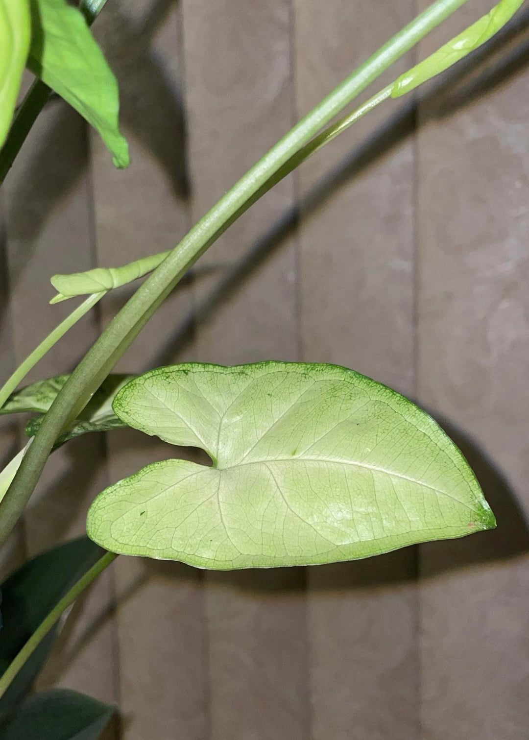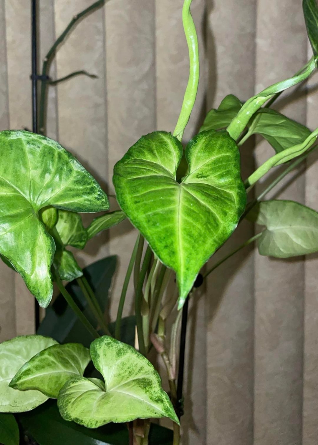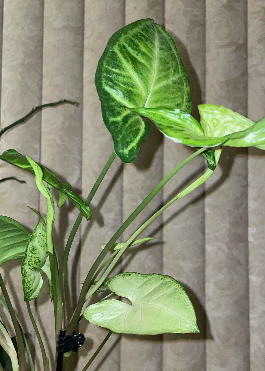 それは私が所有している最も行儀の良い植物の1つであり、私に何らかの問題を引き起こしたことはありません。なぜこれが起こるのか、そして誰かがシンゴニウムの種類を特定できるかどうかに興味があります。 2 つの異なる挿し木を含む植物を購入することは可能ですか?