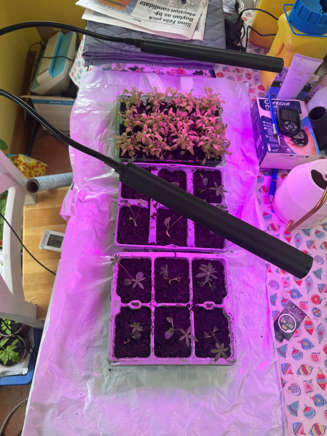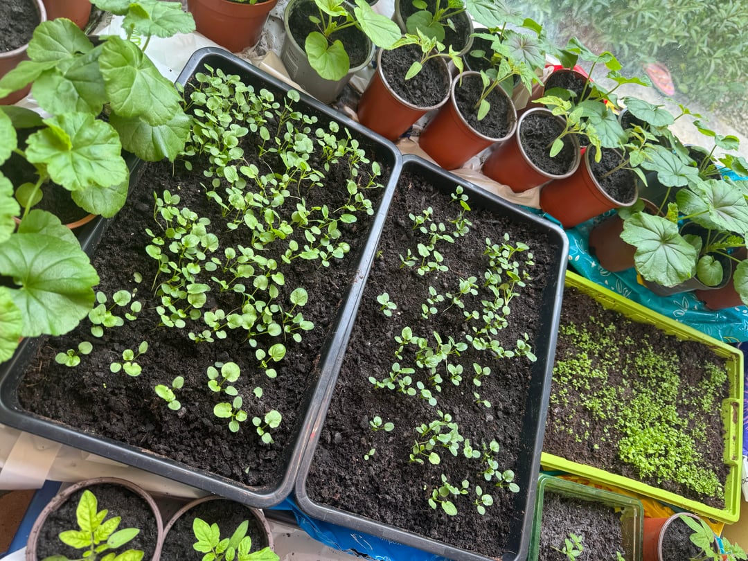 苗更新しました!スペースがなくなり、今日さらに種を蒔くので、来週は温室に移動したいと思っています🌸