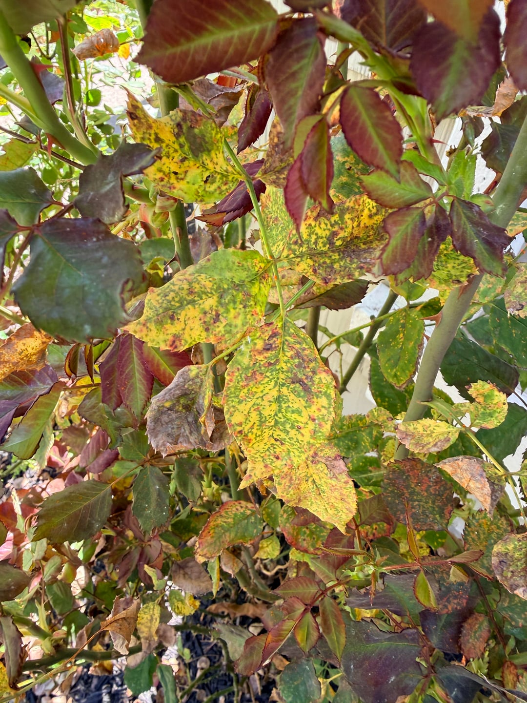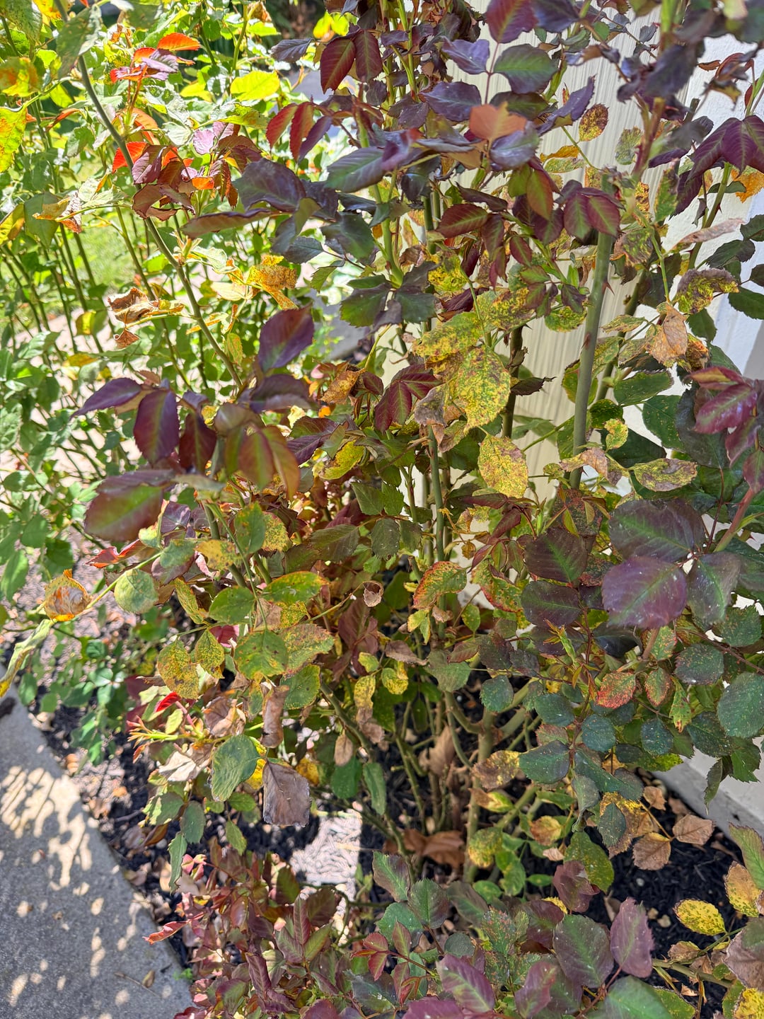 バラの茂みが変色しているのを見て、この問題を解決するためのアドバイスをいただければ幸いです。数日後には茶色になってしまいます。