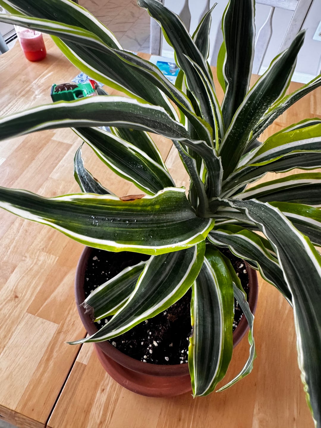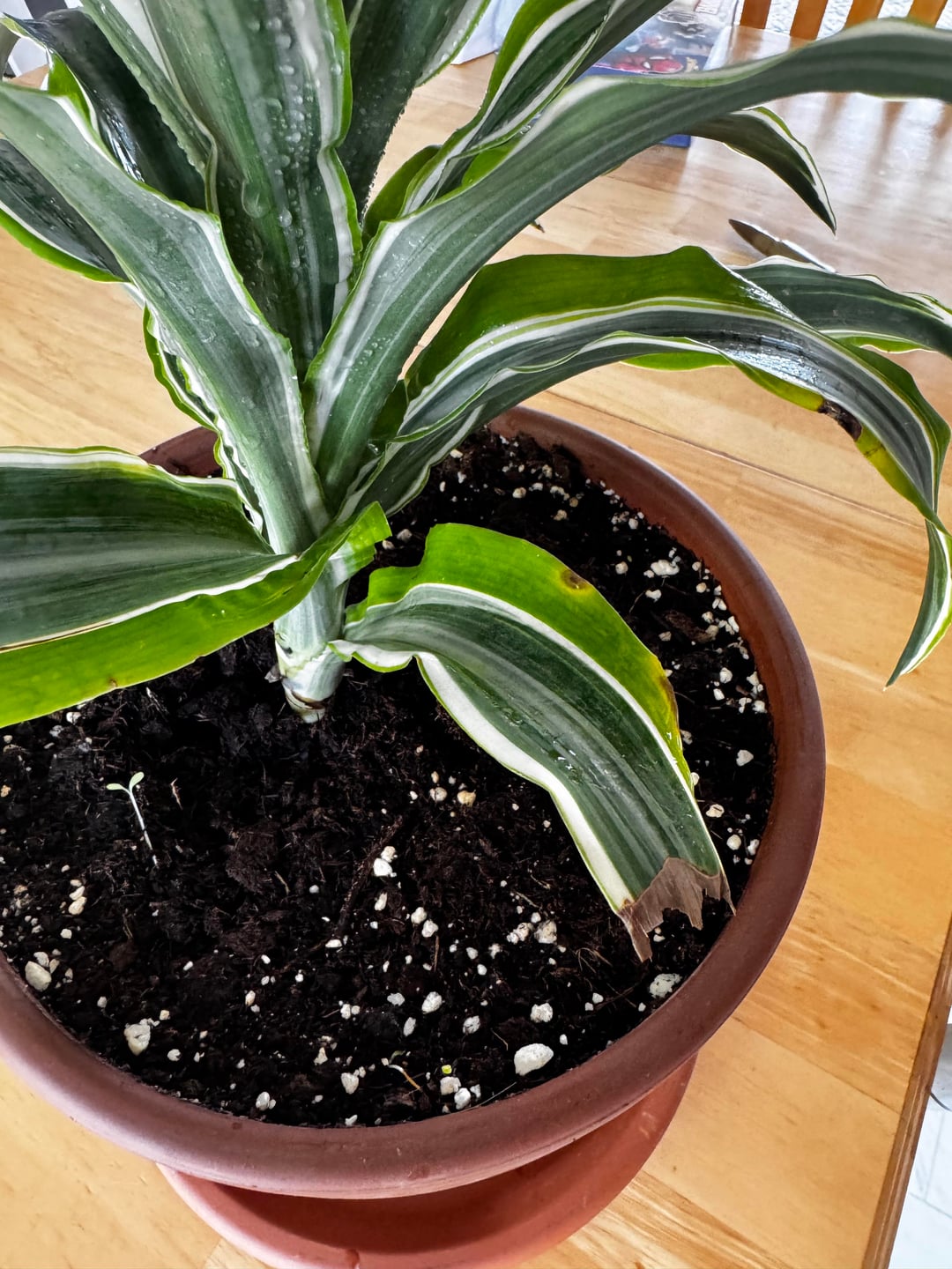 この潜水艦も観葉植物も初めてです。母が航空庭園でレタスを育て、水やり用の観葉植物を買うべきだと決めたため、配備されて以来、息子と私は退屈していました。 (彼女は6歳です)はホームセンターに行き、今から約2週間前にこれを選びました。茶色の斑点が水のやりすぎによるものなのか、それとも光不足によるものなのかわかりませんか?室内用の新しい土の袋に餌を入れて植えました。それが何の植物なのかさえ知りませんが、私が知っているのは、彼が毎日小さなスプレーボトルでそれにスプレーして楽しんでいることだけです