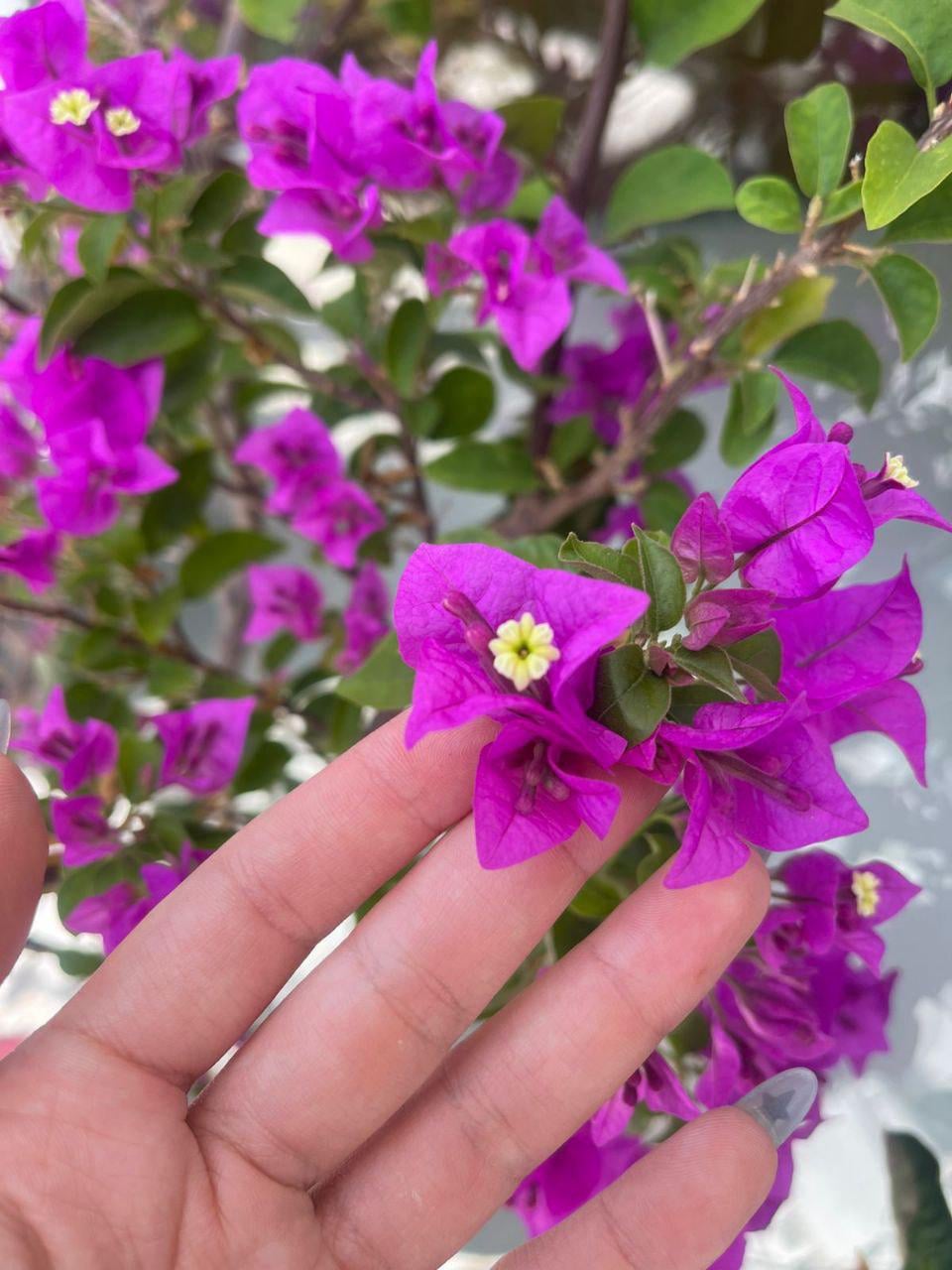 バルコニーに出て、これらのブーゲンビリアを見ることほど素晴らしいことはありません。今日は小さな白い花がとても目立ってとても気に入っています💜