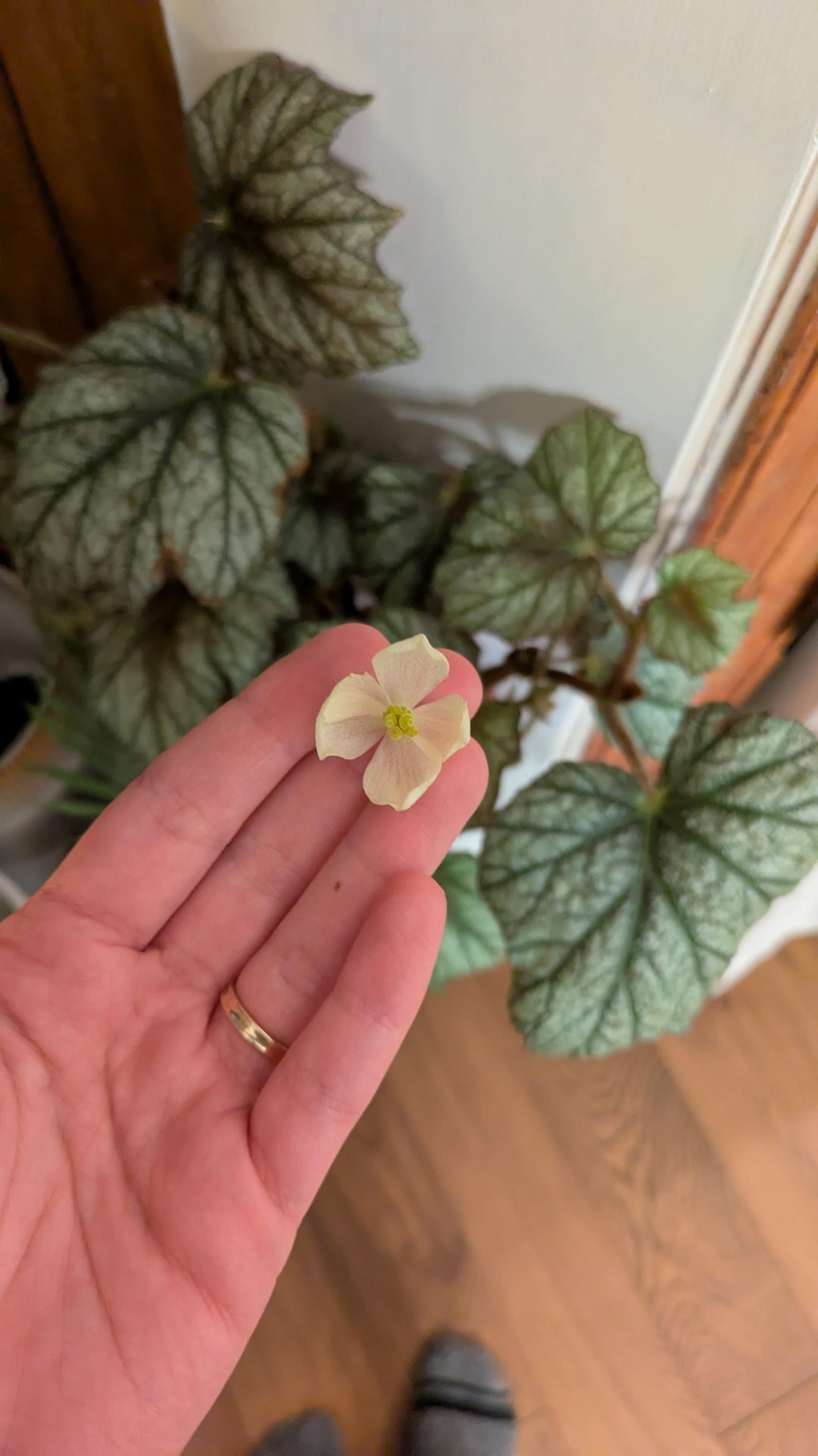 うちのベゴニアは一輪だけ花を咲かせたのですが見逃していました…水やり中に土の上で見つけました。それでも美しい景色ですが!
