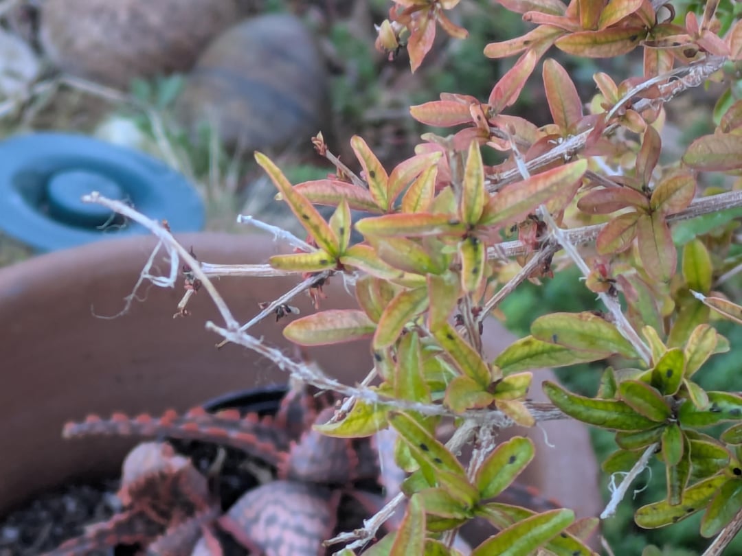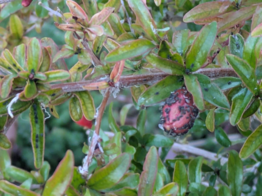 ガーデニングの皆さん、こんにちは。ザクロ、私に何が起こっているのか知っている人はいますか?植物全体に黒い点々・軽い何かのようなものが見られます。その芽に集中します。どちらも鍋に入っています。私はこの問題を抱えていない盆栽をもう 1 つ持っています。
