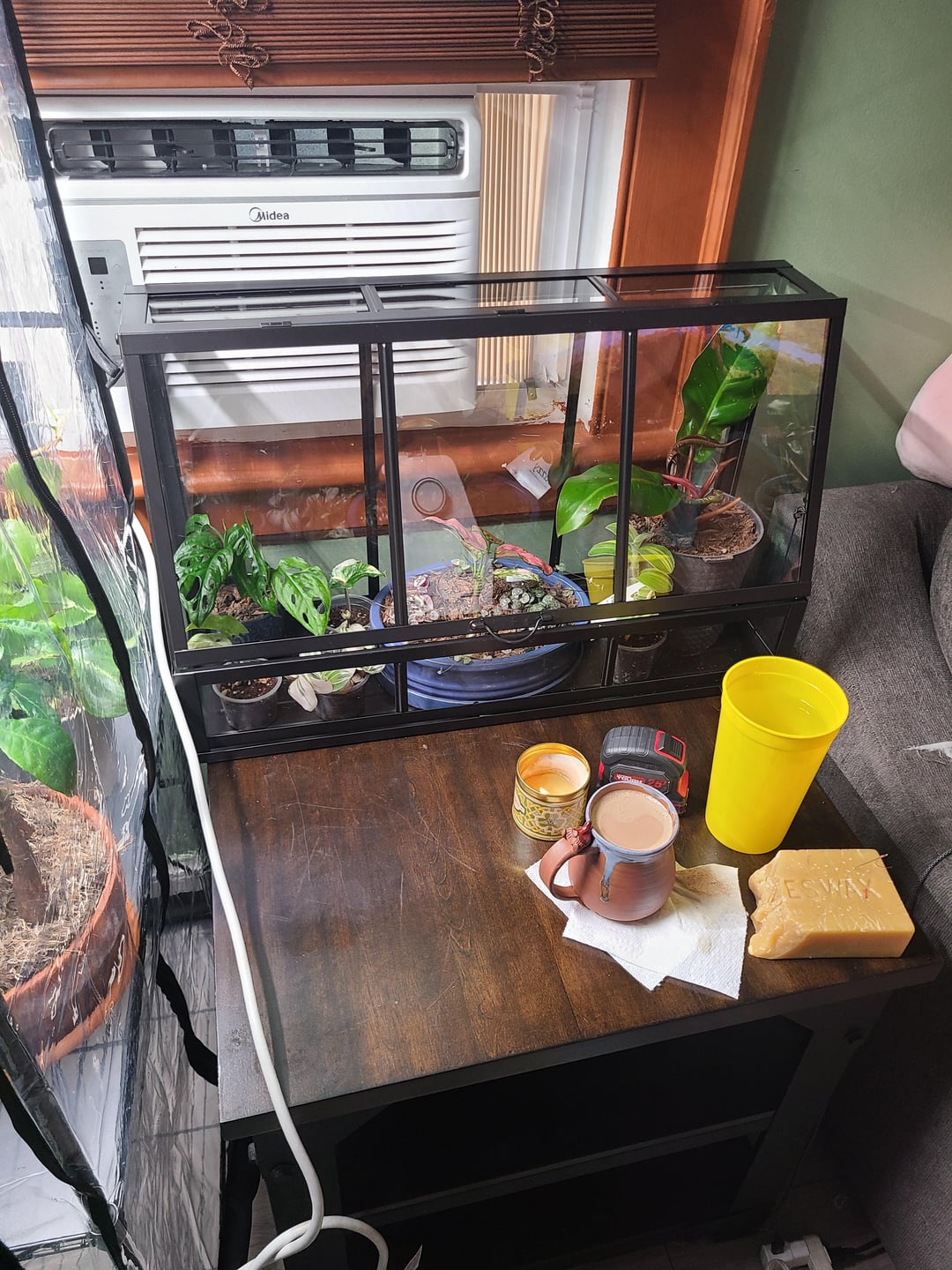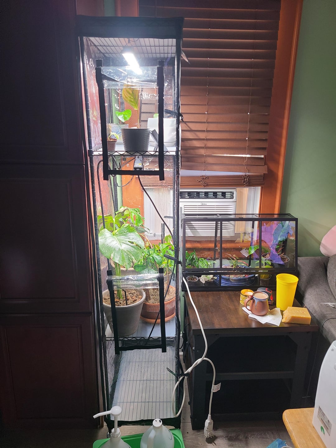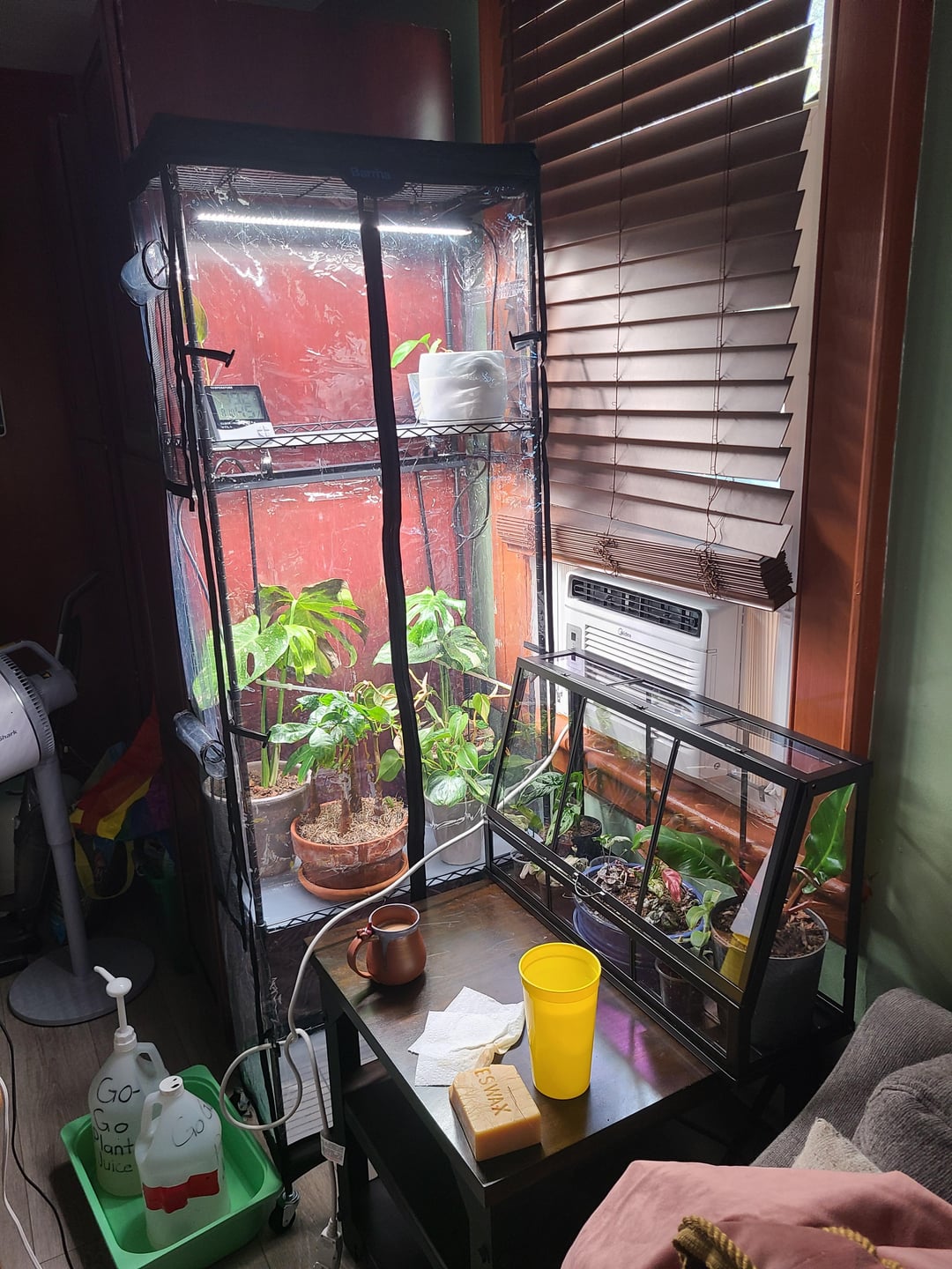 そこで、私は観葉植物の小さなコレクションを持っていますが、最近モンステラ タイコンを手に入れてから成長しました。しかし、うちには猫がいる(ここ数カ月間観察したところ、植物に興味がないようだ)ので、猫を遠ざけるためにテント付きの温室契約を結んだ。他の植物のために、イケアの小さな家も購入しました。