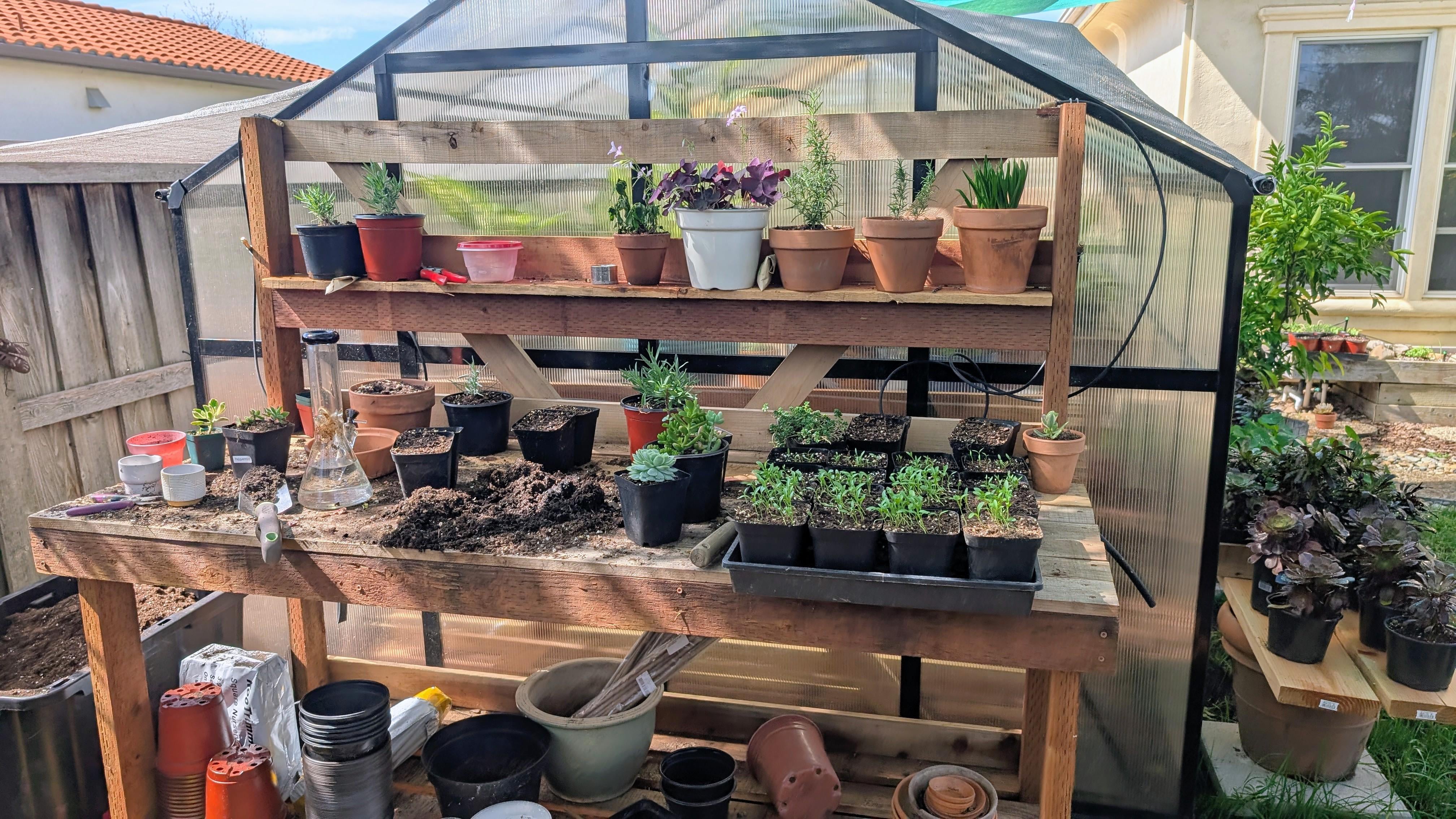 多肉植物、コリアンダー、その他のハーブ。