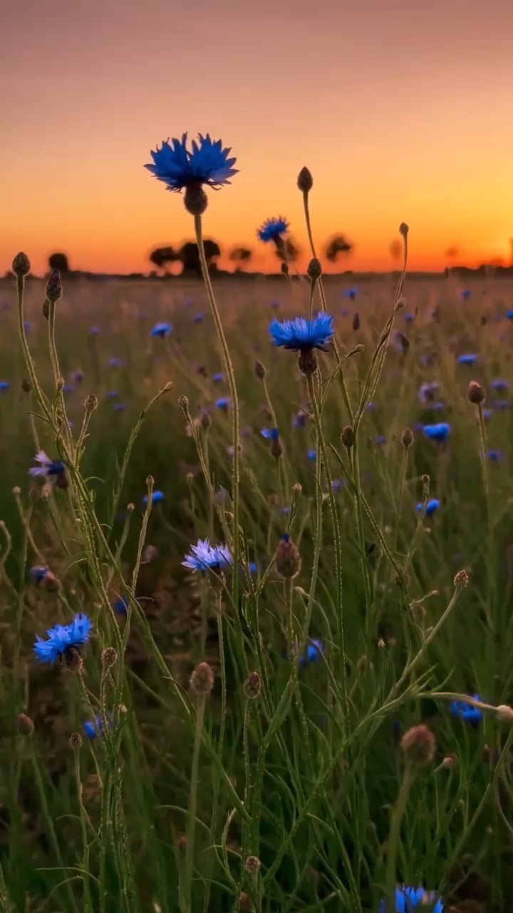 一面青いヤグルマギクの花畑💙