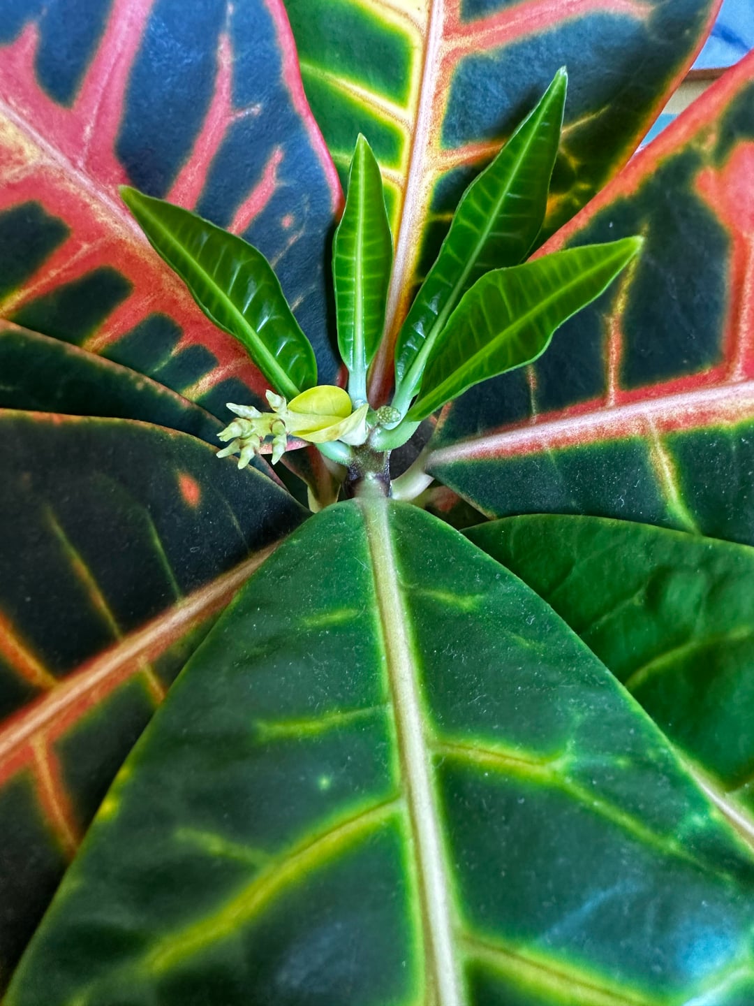 6年をかけてクロトンが変革。 (最初の写真は2020年2月のもの) 友人が国を越えて引っ越したときに、このクロトンをプレゼントされました。クロトンが初めて咲いて、とても楽しみです