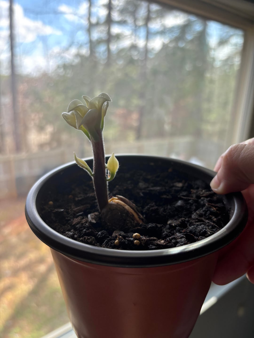 私は同時に 4 つのアボカドの種を育てましたが、そのうちの 3 つは完全に健康で正常に成長しました。私は今でもこの小さな子が何が悪いのかの大ファンです(笑)、しかしなぜ違う道を歩むことにしたのか不思議です。