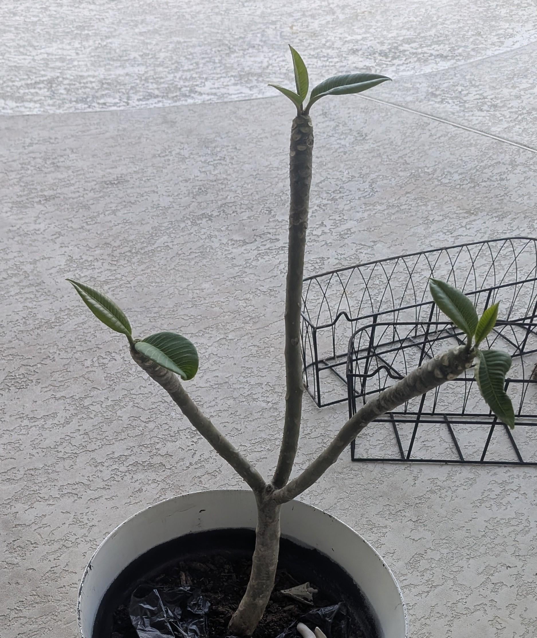 このプルメリアを飼っています。数年間、一度も花が咲かず、いつも屋外でした。私の何が間違っているのでしょうか?ポットが大きすぎますか。そして今週まで編み込みのことを知りませんでした! 😄
